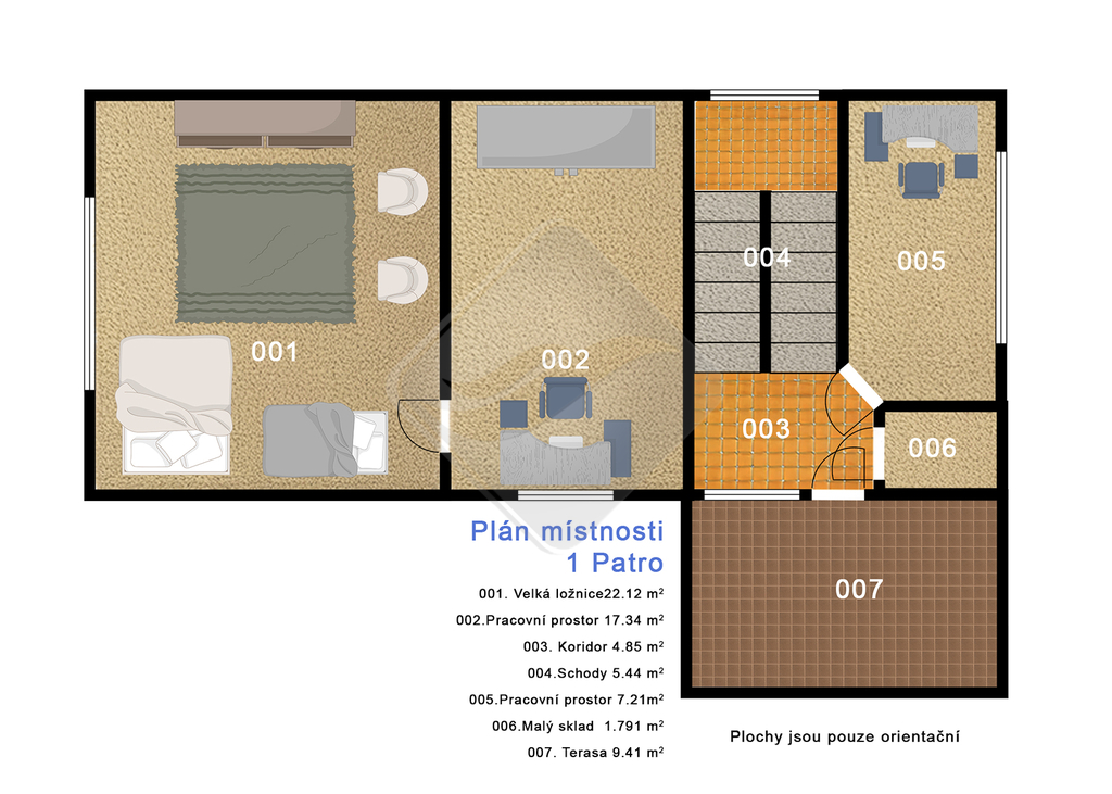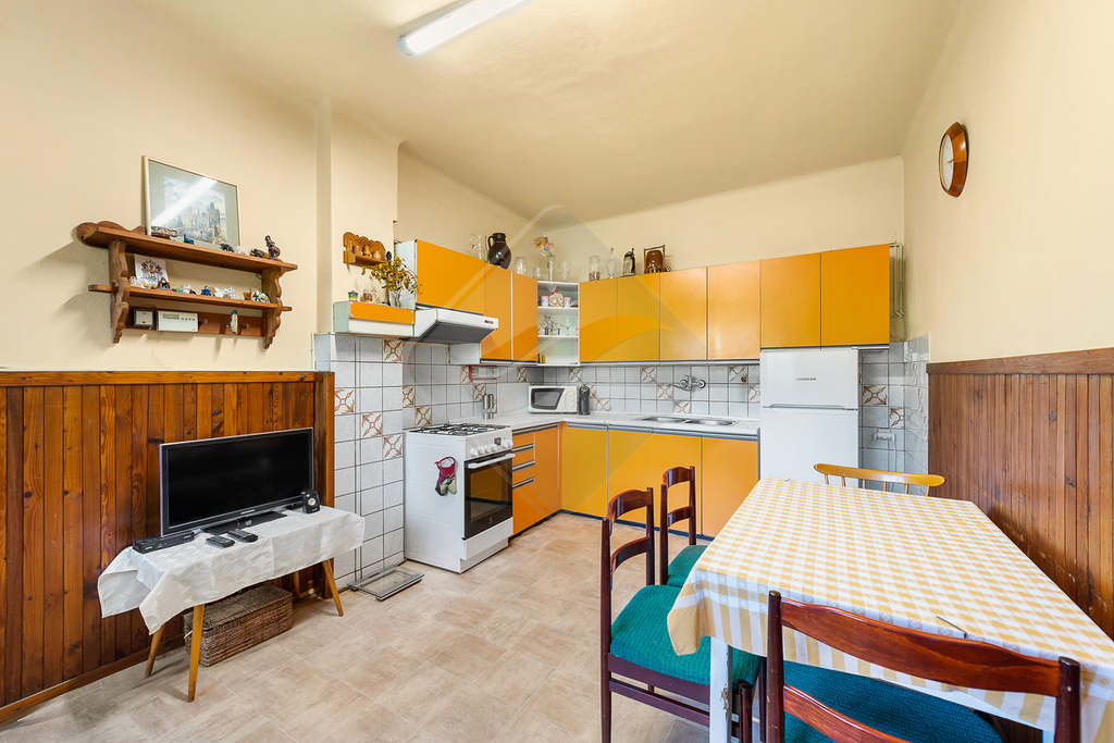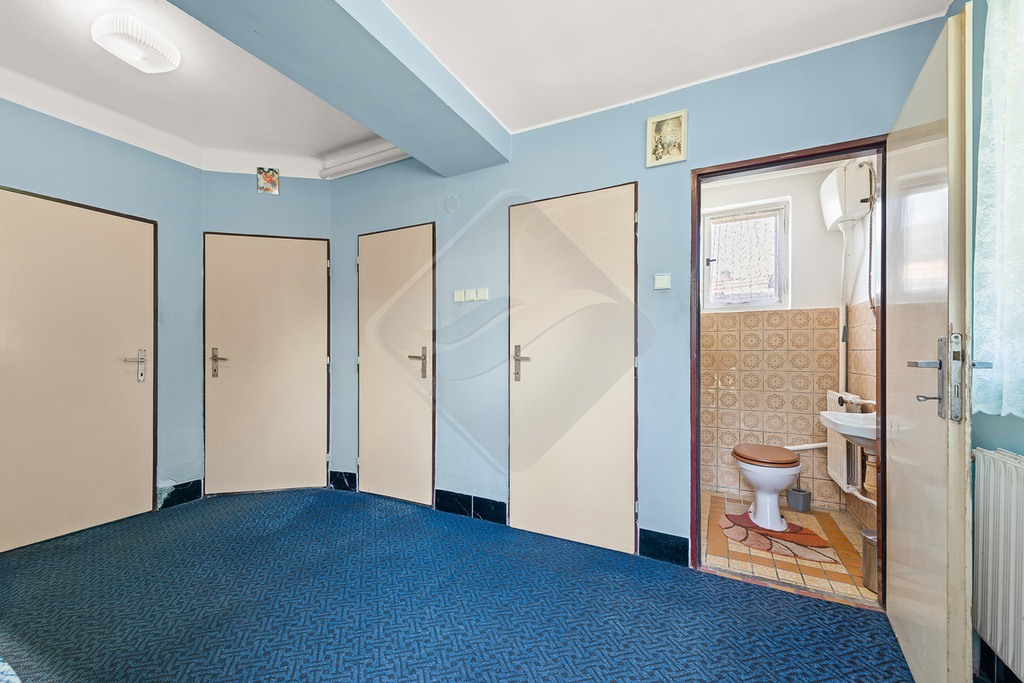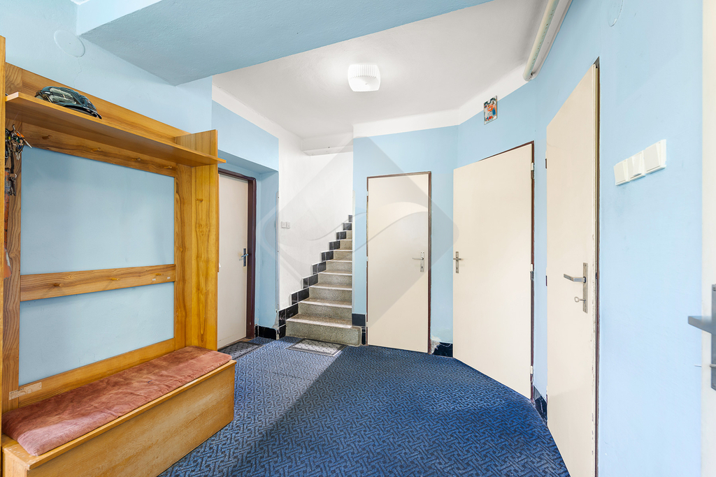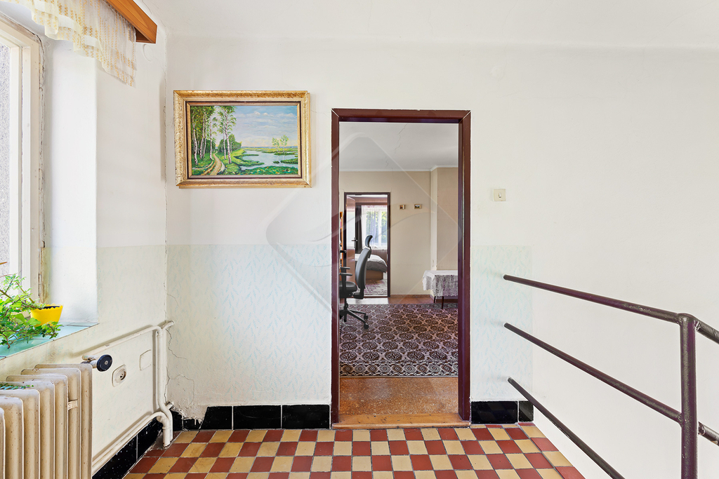 V přízemí domu se nachází předsíň, prostorná kuchyň, obývací pokoj, WC, dvě spíže, sklad, koupelna s vanou, prádelna, sprchový kout a sklad s dílnou. Na poschodí naleznete pokoj, velkou ložnici, pracovnu a sklad s přístupem na prostornou půdu, která nabízí možnost vybudování dalších prostor k bydlení. Z chodby na poschodí je vstup na prostornou terasu s výhledem do zahrady.