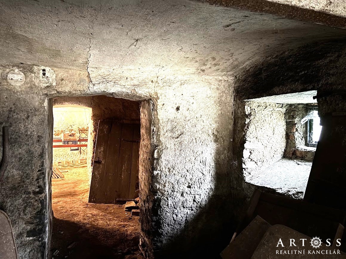 K domu náleží prostorný sklep, stodola, dvůr s hospodářskými prostory (ve špatném technickém stavu) a malá zahrádka za domem.
