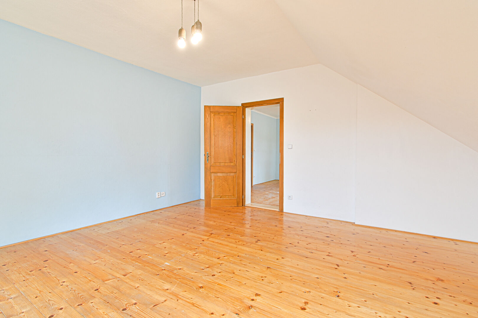 V podkroví jsou pak tři pokoje 20,15 a 25m2, balkon 2,32m2 a terasou 7,8m2.Z chodby je pak vstup do půdního prostoru 50m2, kde se nabízí možnost zbudování dalšího pokoje, (případně dvou místností, komory/šatny/koupelny...)