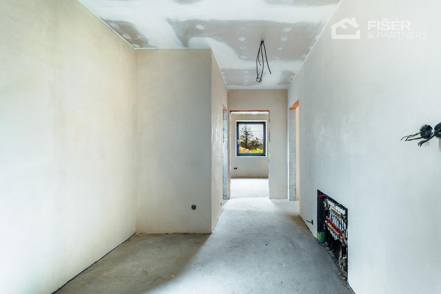 Nemovitost je ve fázi dokončených omítek veškeré rozvody vody, elektřiny i odpadů jsou již hotové. Budoucí majitel tak řeší už jen finální úpravy, jako jsou obklady, podlahové krytiny a vybavení nábytkem.
