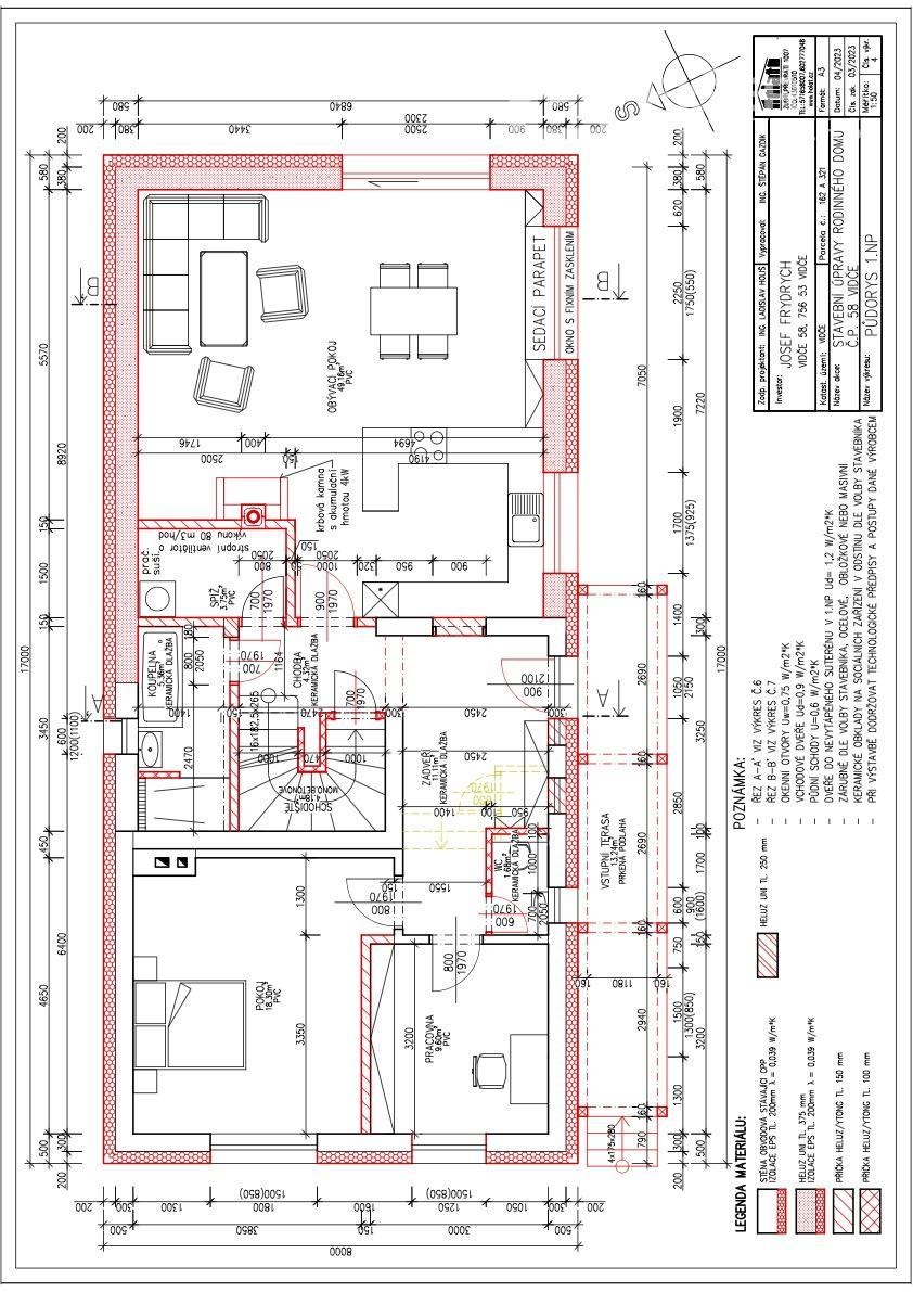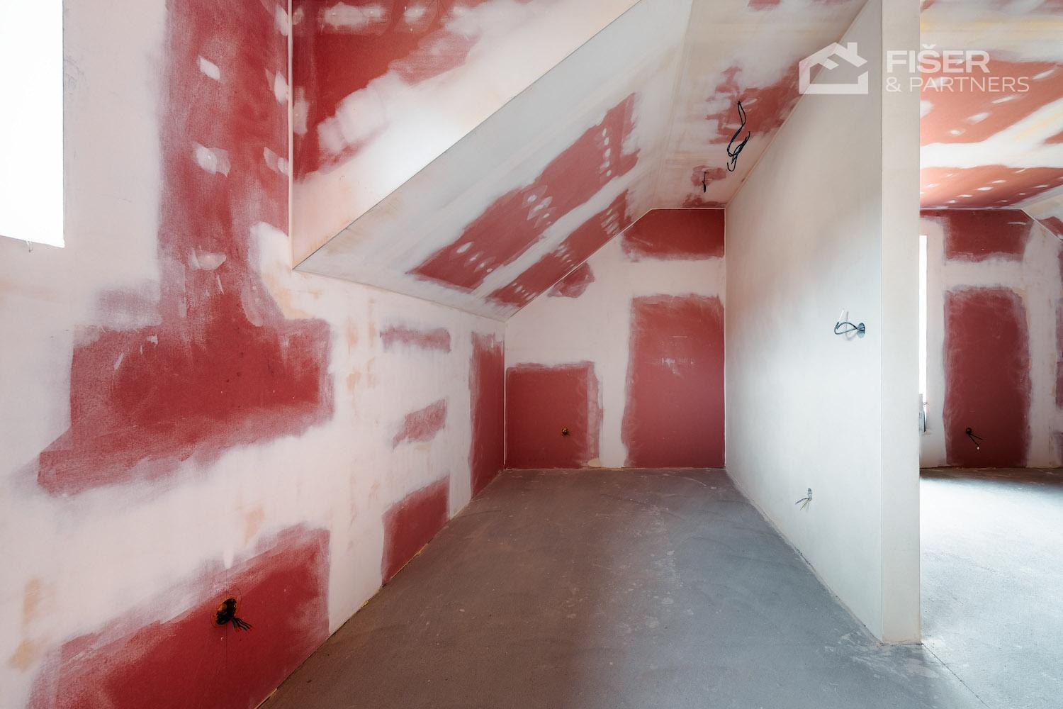V 1. NP na Vás čeká prostorná vstupní chodba, samostatné WC, koupelna, dva pokoje (18,3 m2 a 9,6 m2) a rozsáhlý obývací prostor s jídelnou (49,16 m2) propojený s kuchyní a přímým vstupem na terasu. Po betonovém schodišti se dostanete do 2. NP, kde jsou umístěny tři prostorné pokoje 19,87 m2, 19,01 m2 a ložnice s vlastní šatnou o velikosti 38,43 m2.