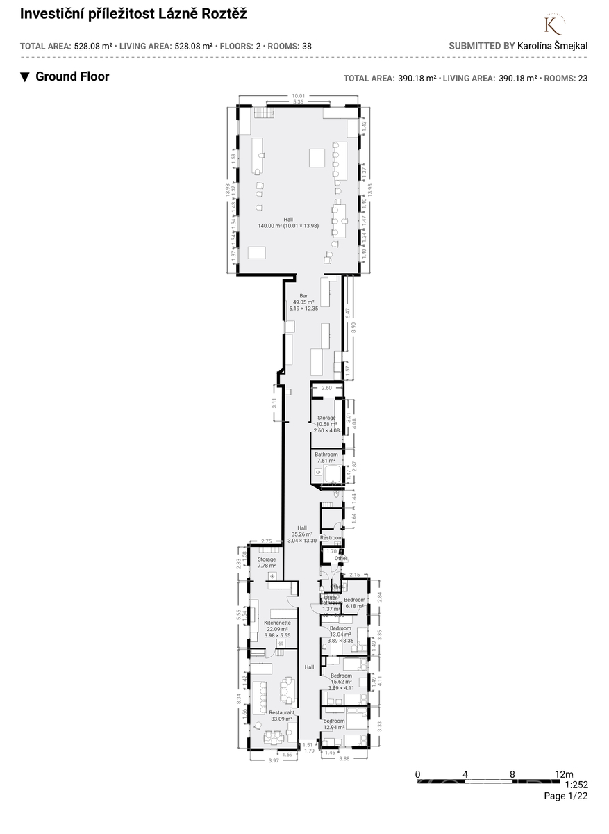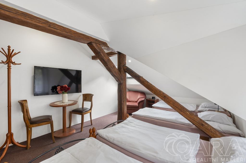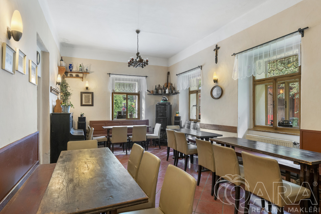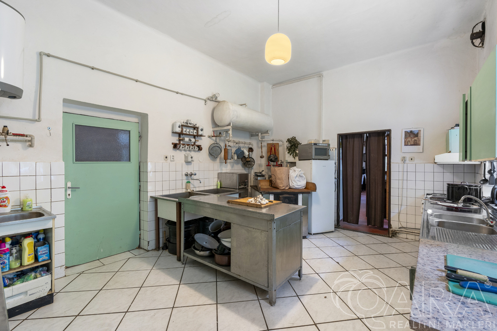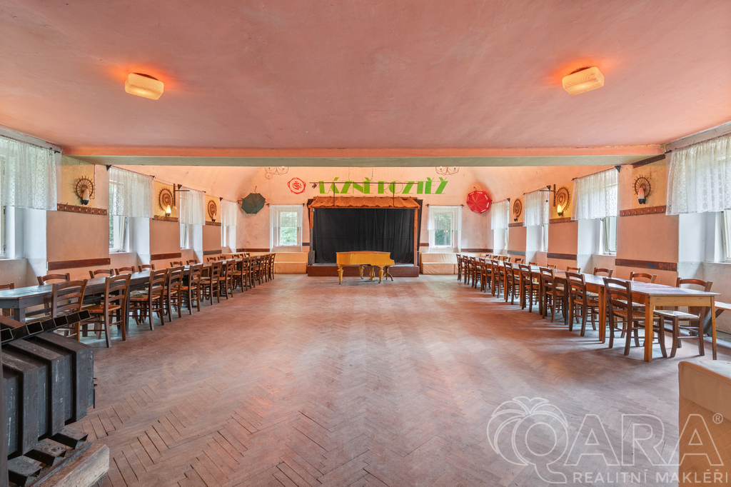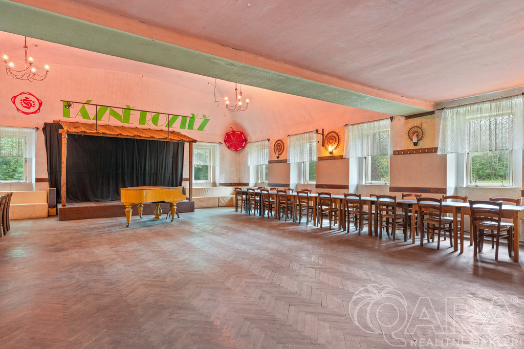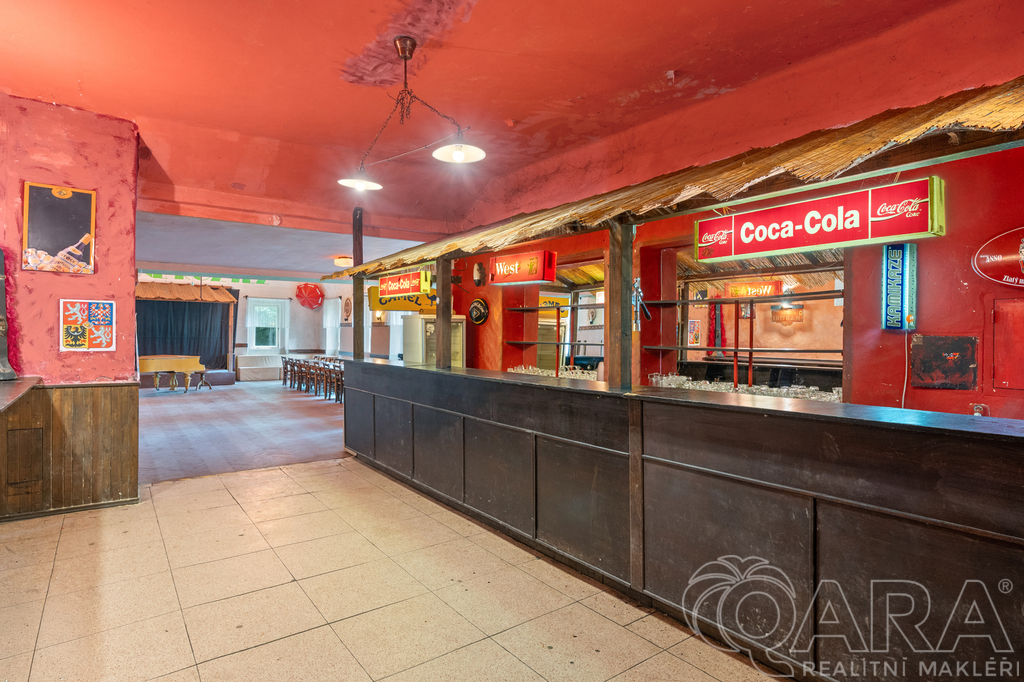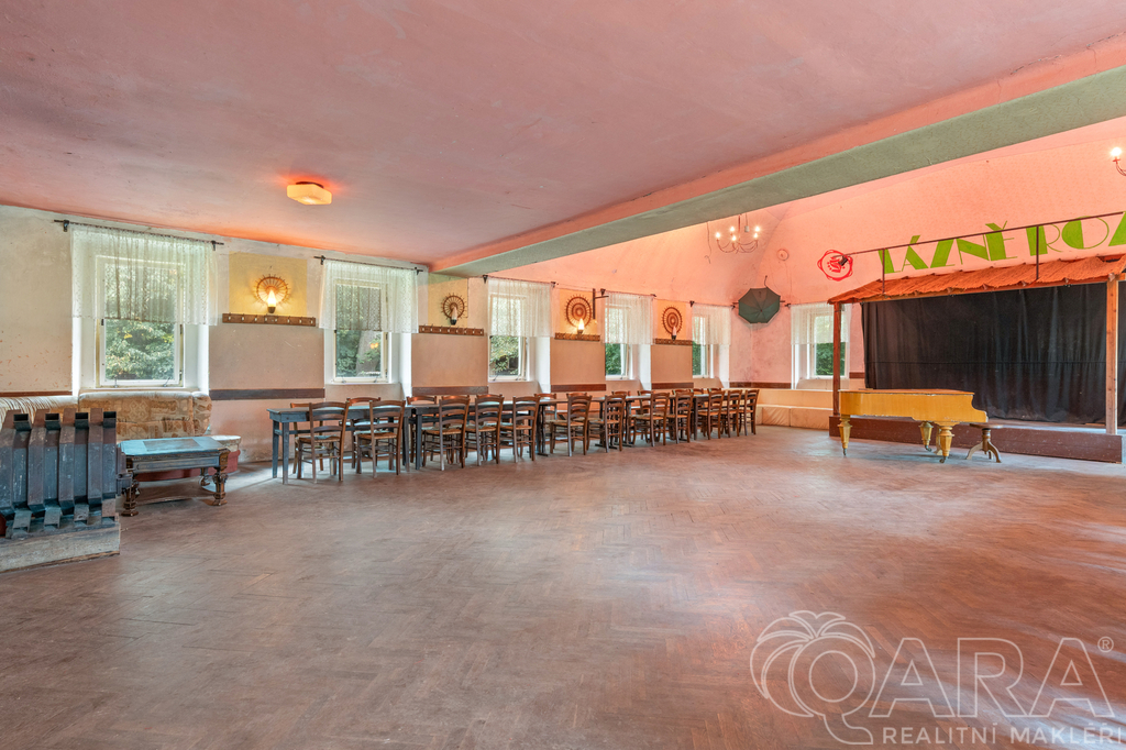 * fungující restaurace s barem, profesionální kuchyní a velkým společenským sálem