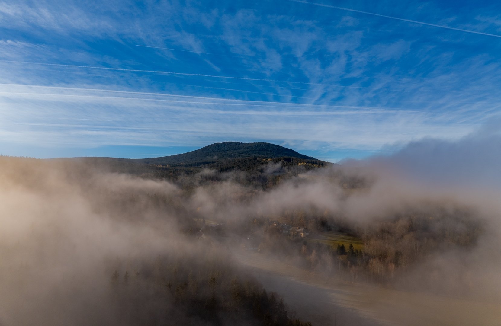 - Panoramatický výhled na Boubín — každý den připomíná blízkost Šumavy.