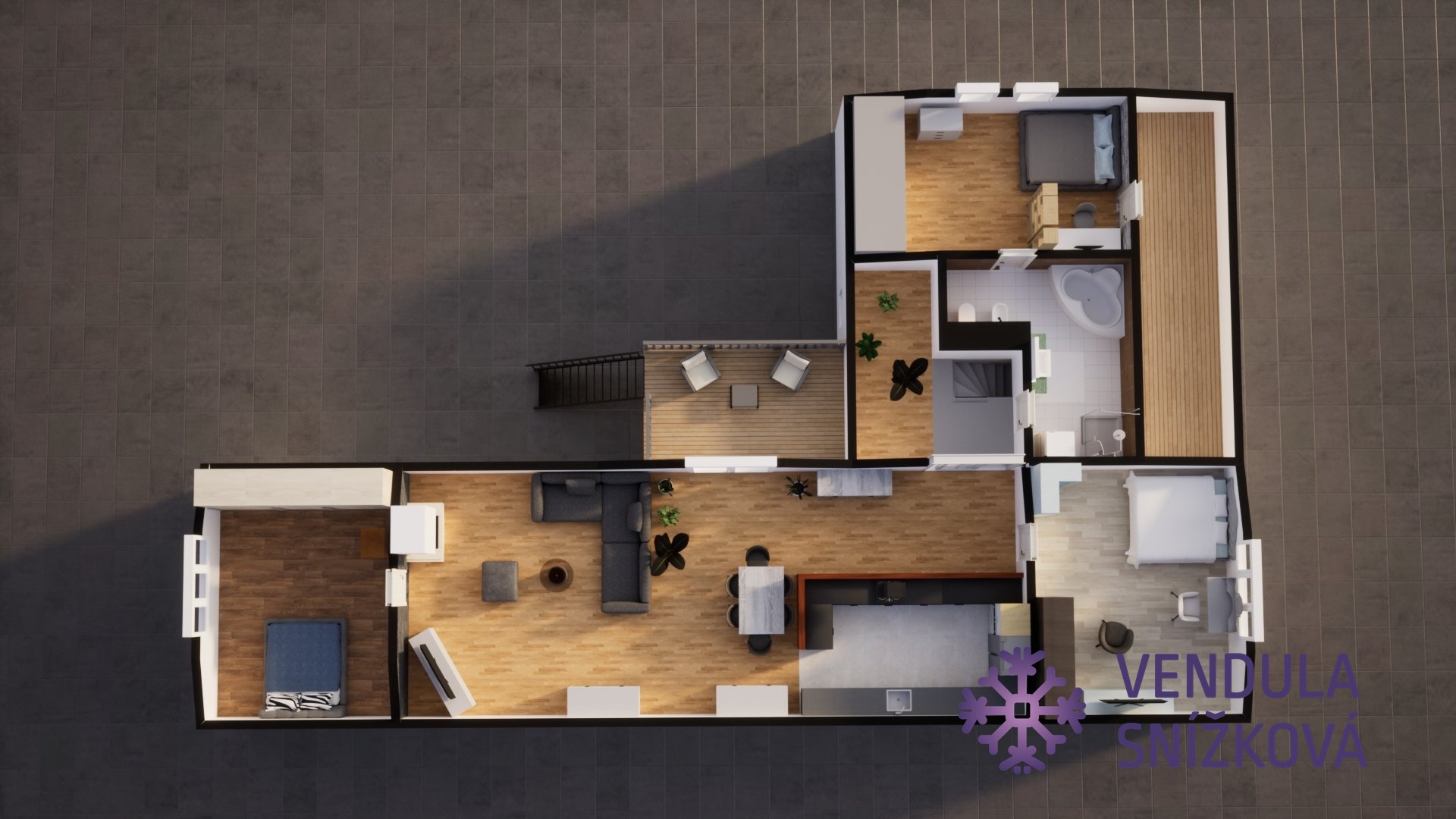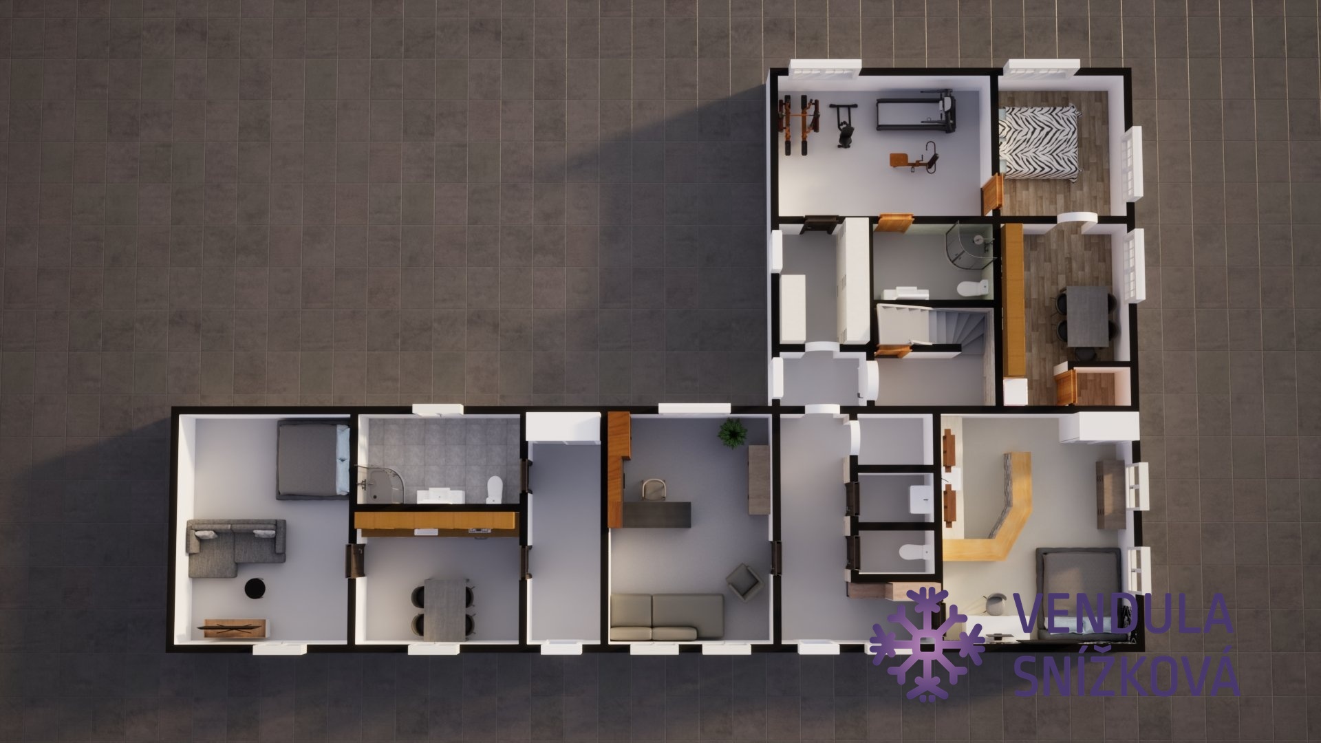 Současné uspořádání již nyní nabízí potenciál pro rozdělení na více jednotek se samostatnými vstupy, což z této nemovitosti dělá zajímavou příležitost nejen pro bydlení, ale i pro investiční využití.