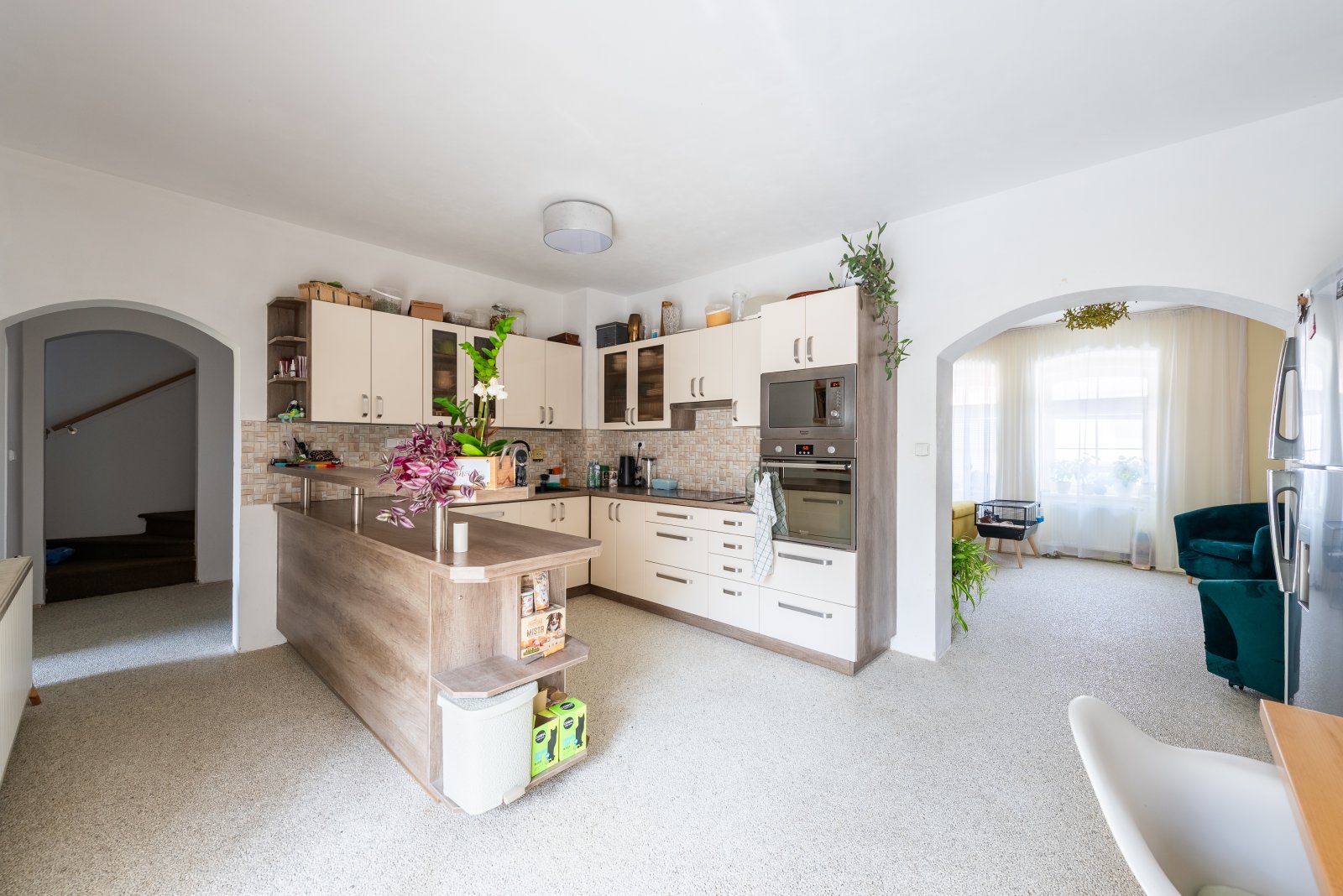 Celý dům je velmi prostorný, s obytnou rozlohou cca. 190 m2 a dispozicí 6+1 bude ideální pro velkou rodinu a pro ty, kteří pracují z domova, podnikají, nebo se prostě jen rádi realizují doma.