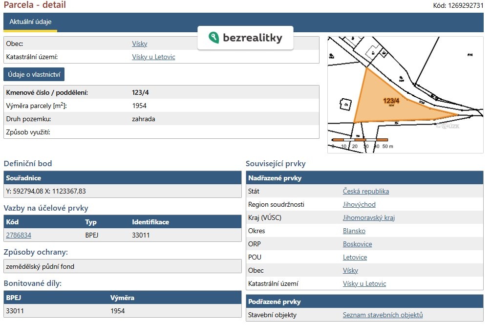 Nabízím k prodeji rovinatou a zcela oplocenou zahradu v osobním vlastnictví v klidné části obce Vísky u Lelekovic o celkové výměře 1 954 m².