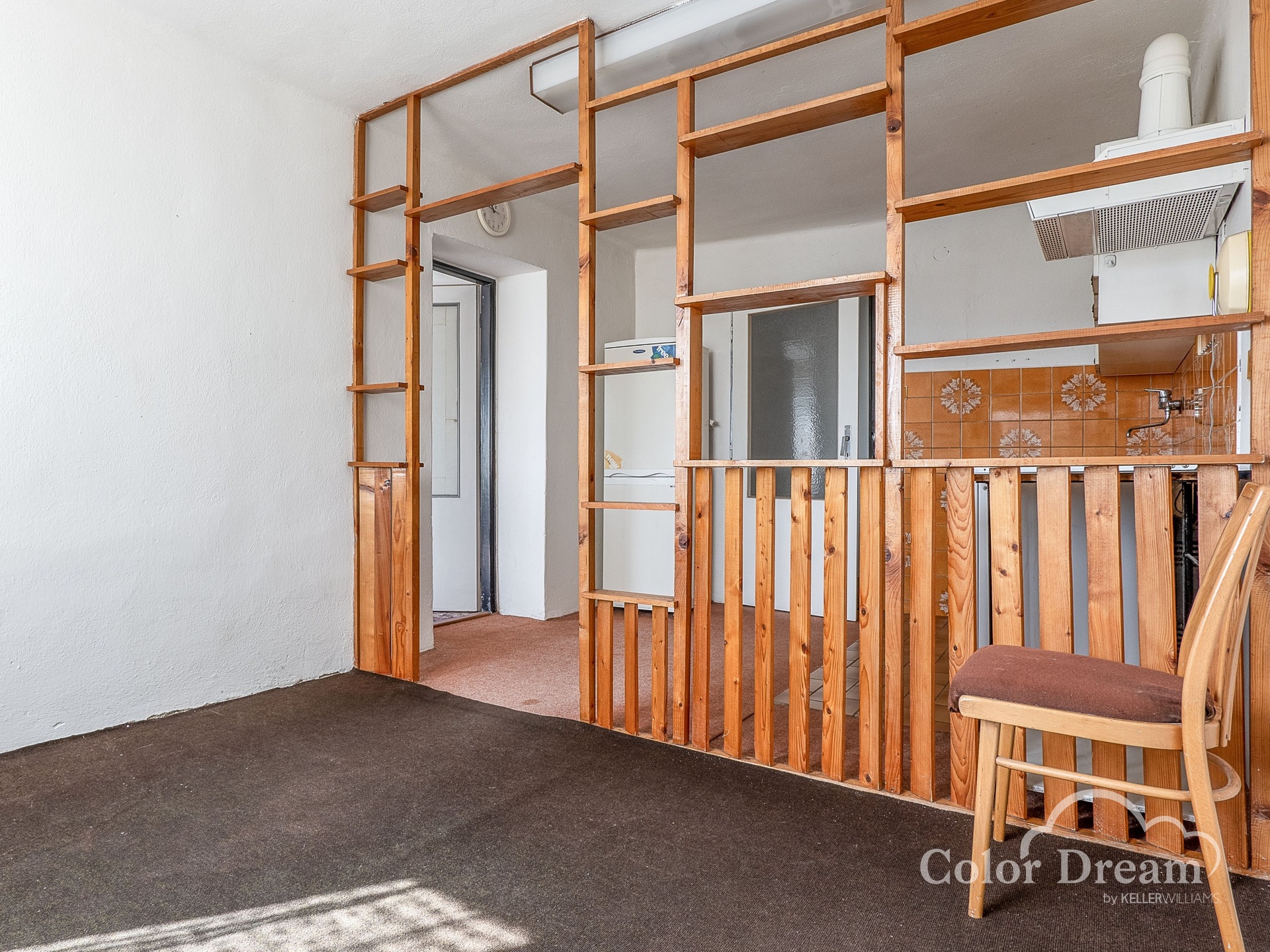 1.NP: vstupní prostor se zádveřím, kuchyně s oknem do dvora, obývací pokoj, koupelna s vanou i sprchovým koutem a WC (oddělené příčkou s dveřmi)