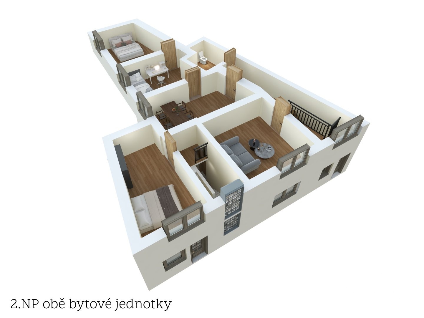 Dispozičně jsou řešeny tak, že mohou fungovat zcela nezávisle, ale zároveň mezi nimi může být průchozí propojení, což dává nemovitosti široké možnosti využití – od dvougeneračního bydlení, přes kombinaci bydlení a podnikání, až po pronájem části domu.