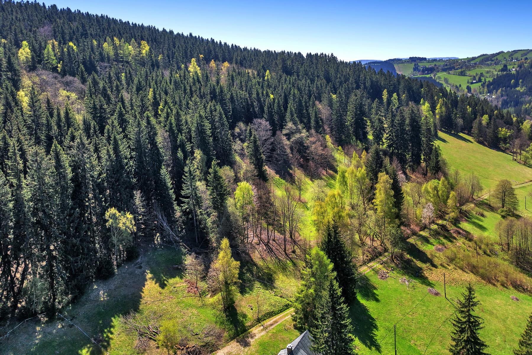 K prodeji je soubor pozemků (lesy, louky) a pozemek určený k výstavbě rodinného domu nebo rekreačního objektu v srdci Krkonoš, v chráněné zóně Krkonošského národního parku, ve velmi atraktivní lokalitě horské obce Vítkovice v Krkonoších. Místo vás nadchne krásnými výhledy a orientací na JZ. Pozemek se nachází na severní stráni směr Janova hora - Černý Důl, v místní osadě zvané Janova Hora. Stavební pozemek je součástí plochy SV - plochy smíšené obytné - venkovské, dále NL (plochy lesní), NZ (plochy zemědělské) a NSp (plochy smíšené nezastavěného území - přirozené a přírodě blízké ekosystémy). Jedná se o soubor pozemků nepravidelného tvaru, evidovaných na LV 847 v katastrálním území Vítkovice v Krkonoších. Celková výměra všech pozemků je 21.708 m2, z čehož plocha, kde lze umístit nemovitost má cca 1700 m2, lesní pozemky jsou 11.936 m2 a trvalý travní porost 7.969 m2. Přístup na pozemek zajišťuje veřejná nezpevněná komunikace. Pozemek neobsahuje přípojky inženýrských sítí, lze napojit na elektřinu, voda je řešena místním zdrojem na vlastním pozemku, odpady je nutno řešit vlastní ČOV. Součástí prodeje je projekt na výstavbu dvoupodlažní horské chalupy s již neplatným stavebním povolením. Místo nabízí klidné prostředí uprostřed přírody s možností výletů do širokého okolí Krkonoš.