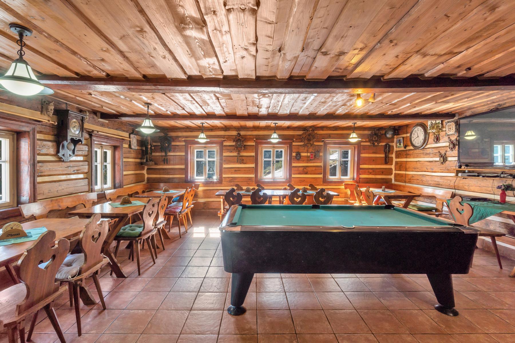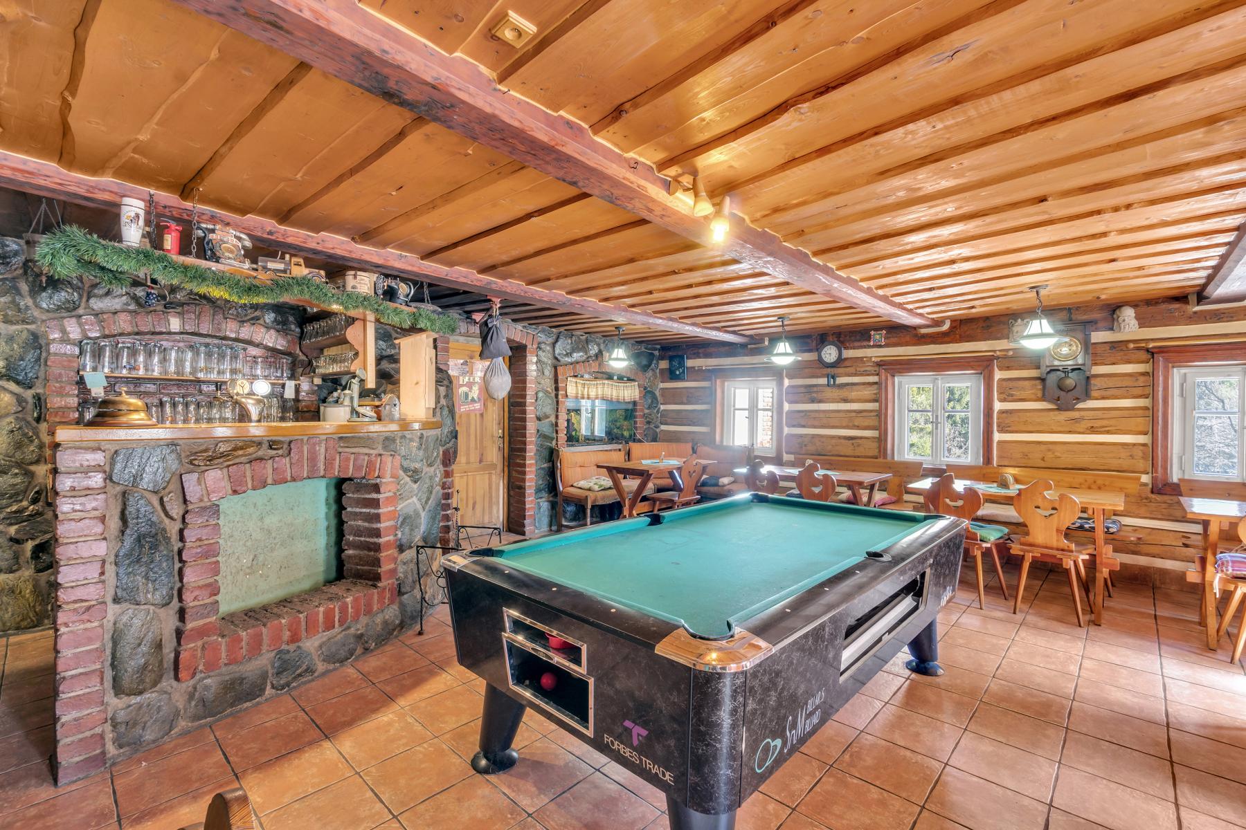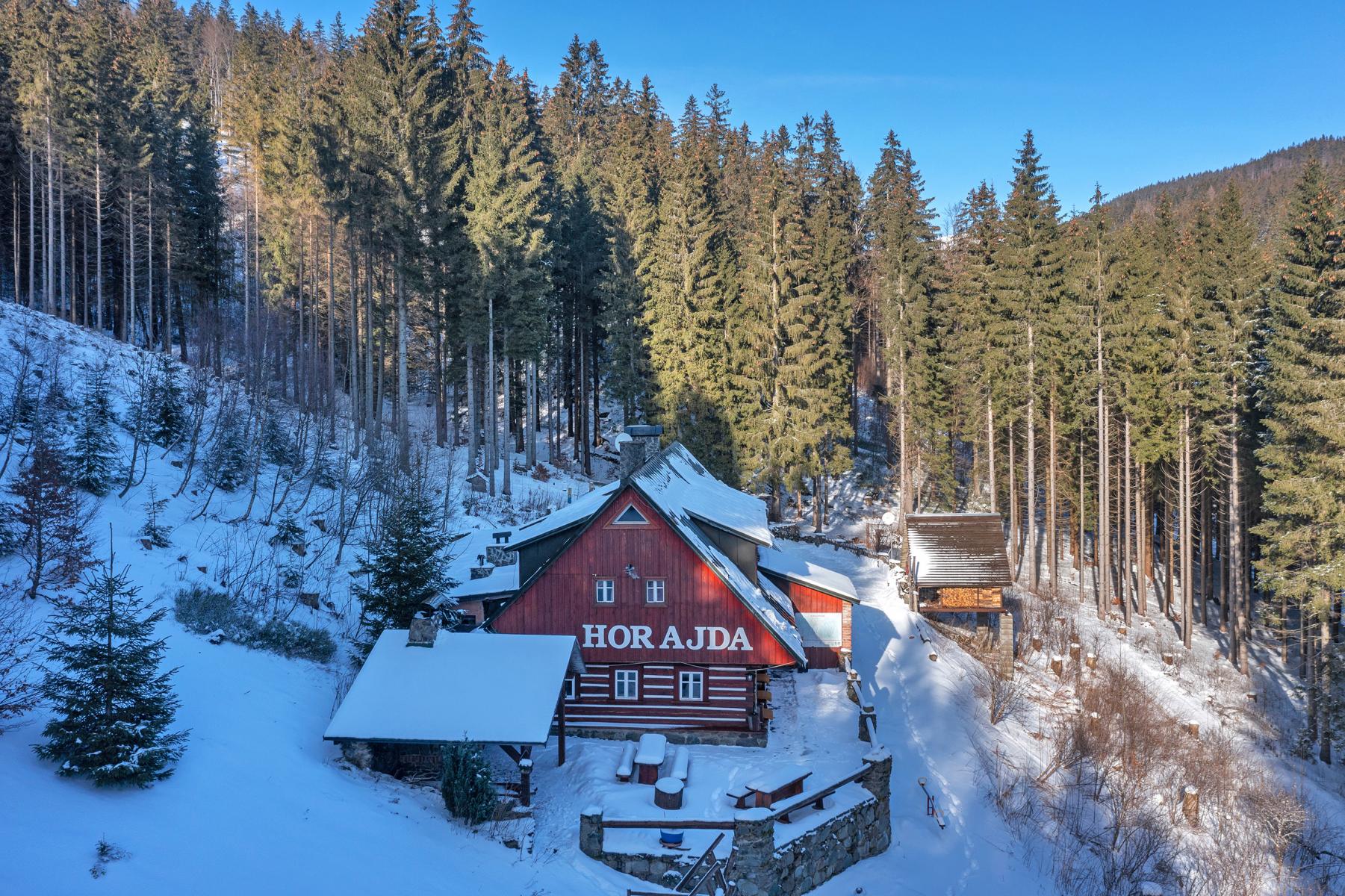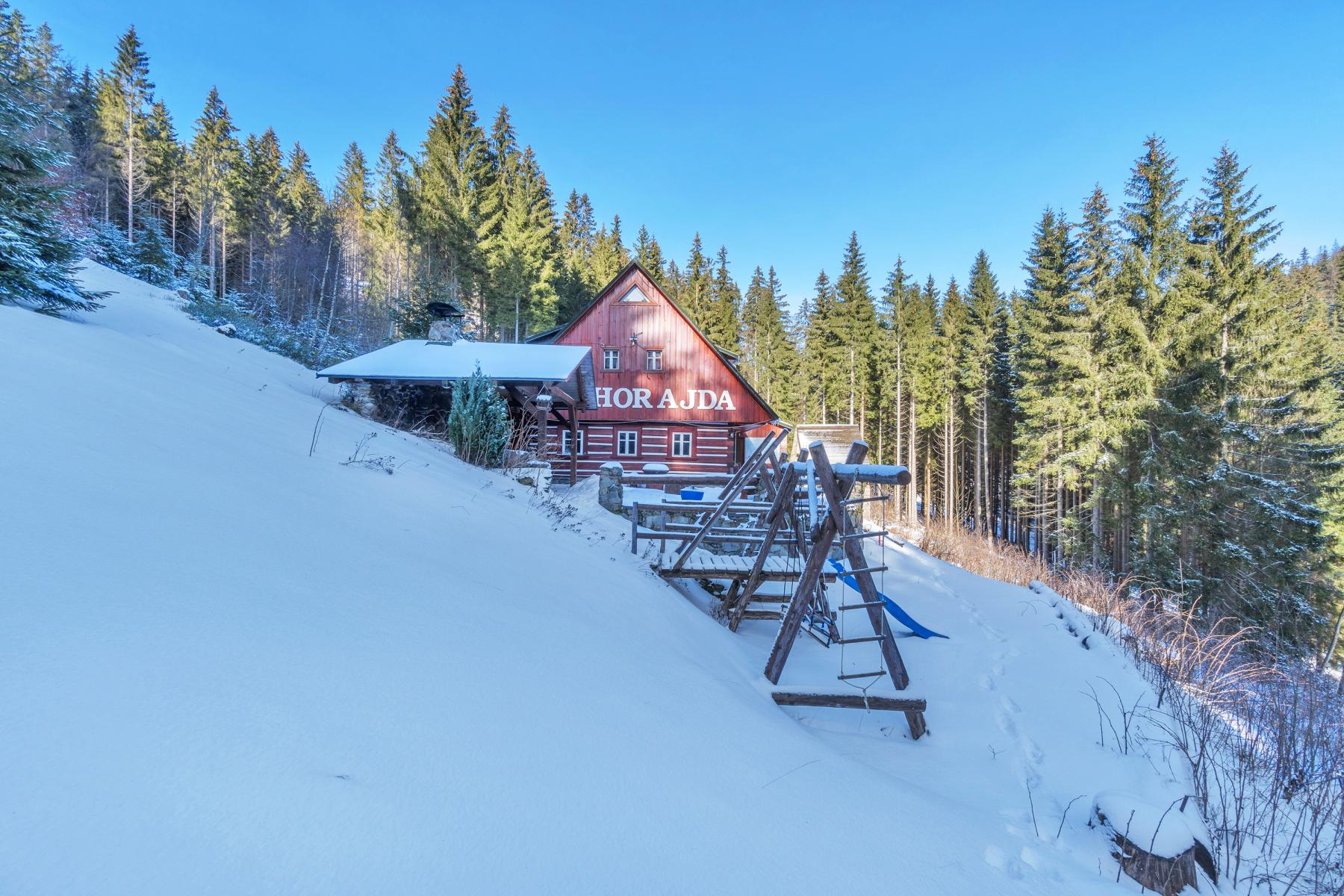 K prodeji je horská chalupa v jedné z nejkrásnějších okrajových částí obce Vítkovice, v Hutích, při cestě na Dvoračky, okolo hotelu Skála. Nemovitost se nachází na samotě uprostřed lesů Krkonošského národního parku, v blízkosti Kozelského potoka a je obklopena naprostým klidem, přesto v oblíbené a vyhledávané turistické lokalitě, kousek od Aldrova, Horních Míseček a přímo na běžkařských, turistických a cyklotrasách. Chalupa je zpřístupněna po celoročně přístupné komunikaci. Objekt prošel v roce 2008 celkovou vnitřní a venkovní rekonstrukcí, s použitím přírodních materiálů dřeva a kamene. Disponuje 6-ti podkrovními mezonetovými pokoji s celkovou kapacitou 28 lůžek. Všechny pokoje jsou vybaveny vlastním sociálním zázemím (sprcha, WC) a podlahovým vytápěním. Součástí domu je prostorná společenská místnost s krbem, vybavená kuchyně a částečně krytá venkovní terasa s posezením a venkovním grilem. Přízemí nabízí zázemí bytové jednotky 2+kk. Podsklepená je pouze část nemovitosti a sklep je užíván jako vinný sklípek s posezením. Technické zázemí obsahuje elektrokotel, který lze použít, pokud není možno topit v krbových kamnech, které jsou hlavním zdrojem tepla i ohřevu teplé vody. Voda je získávána z vlastní lesní studny s pravidelnými testy kvality vody a dostatečnou kapacitou. Odpady jsou svedeny do vlastní ČOV. Objekt je prodáván včetně vybavení pro provoz.