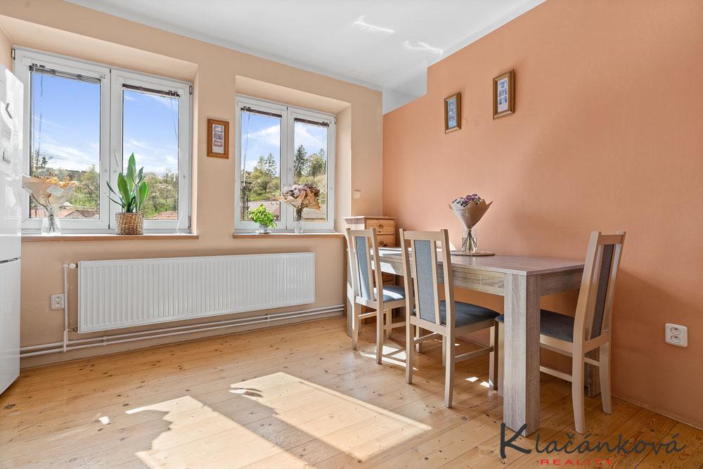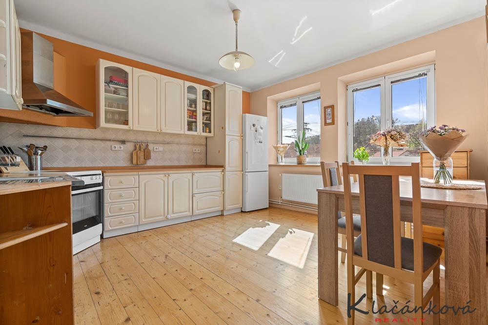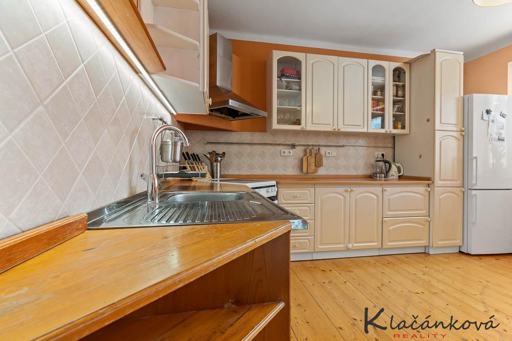 Svou polohou vhodný i pro sídlo firmy, možnost parkování. Nabízíme k prodeji dům v řadové zástavbě, dům koncový. Jedná se o zděný dům - dvě bytové jednotky. Celo podsklepený. Dům prošel před 25 lety kompletní rekonstrukcí. Nová střecha , trámy, latě. Střešní taška Bramac. Nové okna, zateplení - 16 cm polystyren. Topení - plyn, alternativou jsou i krbová kamna. V domě nová elektroinstalace, podlahy - dlažba, dřevěné parkety. Nové rozvody vody v plastu. V INP - bytová jednotka 3+1. /koupelna,wc/. Tyto prostory jsou vyklizeny. Historie domu ukazuje na možnosti využití ke komerčním účelům. V IINP bytová jednotka 4+1 /koupelna se sprchovým koutem a vanou/. V půdní vestavbě - pokoj. K domu náleží zázemí - dílna, technická místnost, prostory pro uložení sportovního vybavení. U domu menší zahrada. Parkování u domu. PENB bude dodán.