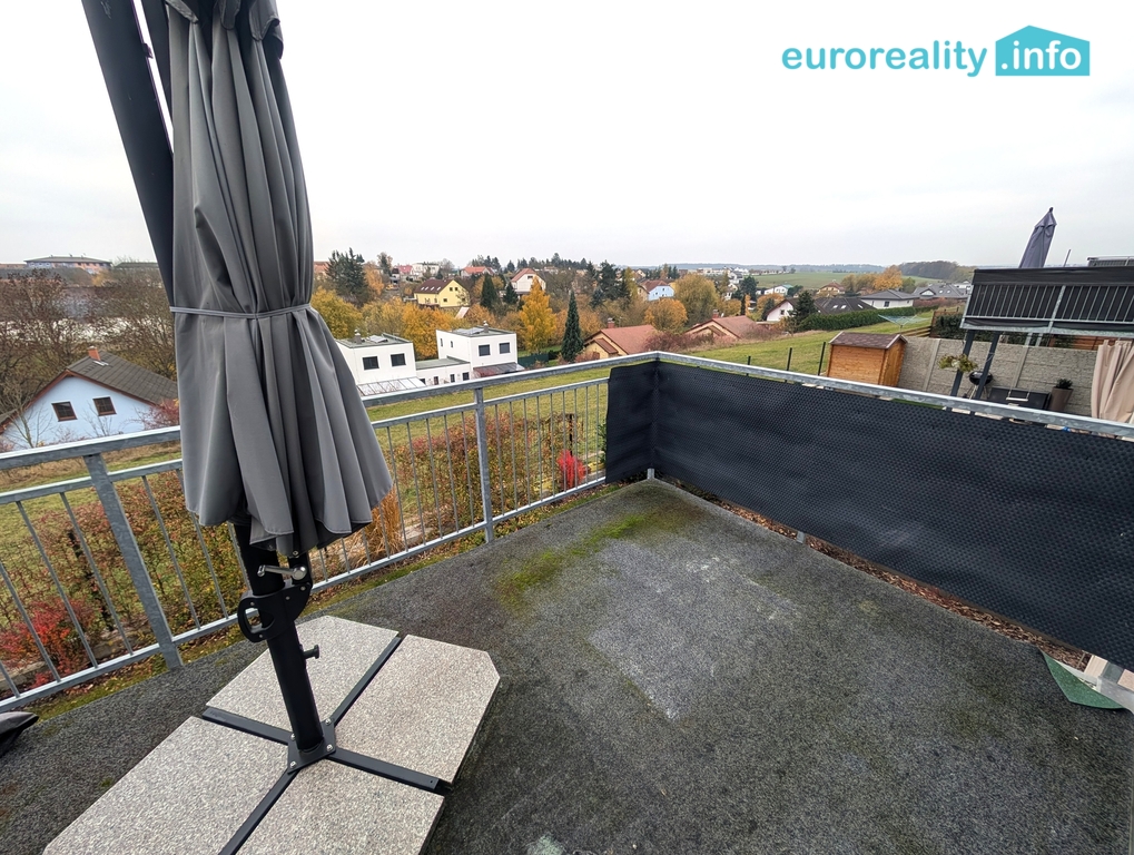 Byt se nachází v 1. patře dvoupodlažního objektu, což zajišťuje dostatek soukromí a klidu. Součástí nemovitosti je velká terasa (8 m2) s pěkným výhledem, která je ideální pro relaxaci a venkovní posezení. Zároveň k bytu náleží komora na patře.