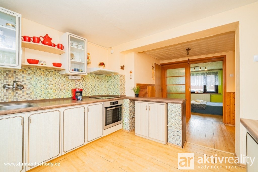 V prvním patře se nachází bytová jednotka také o dispozici 4+1, která je v dobrém udržovaném stavu, ale nabízí příležitost k modernizaci a úpravám dle vašich představ. Také je zde zachovalá kuchyňská linka a koupelna se sprchovým koutem a samostatné WC.