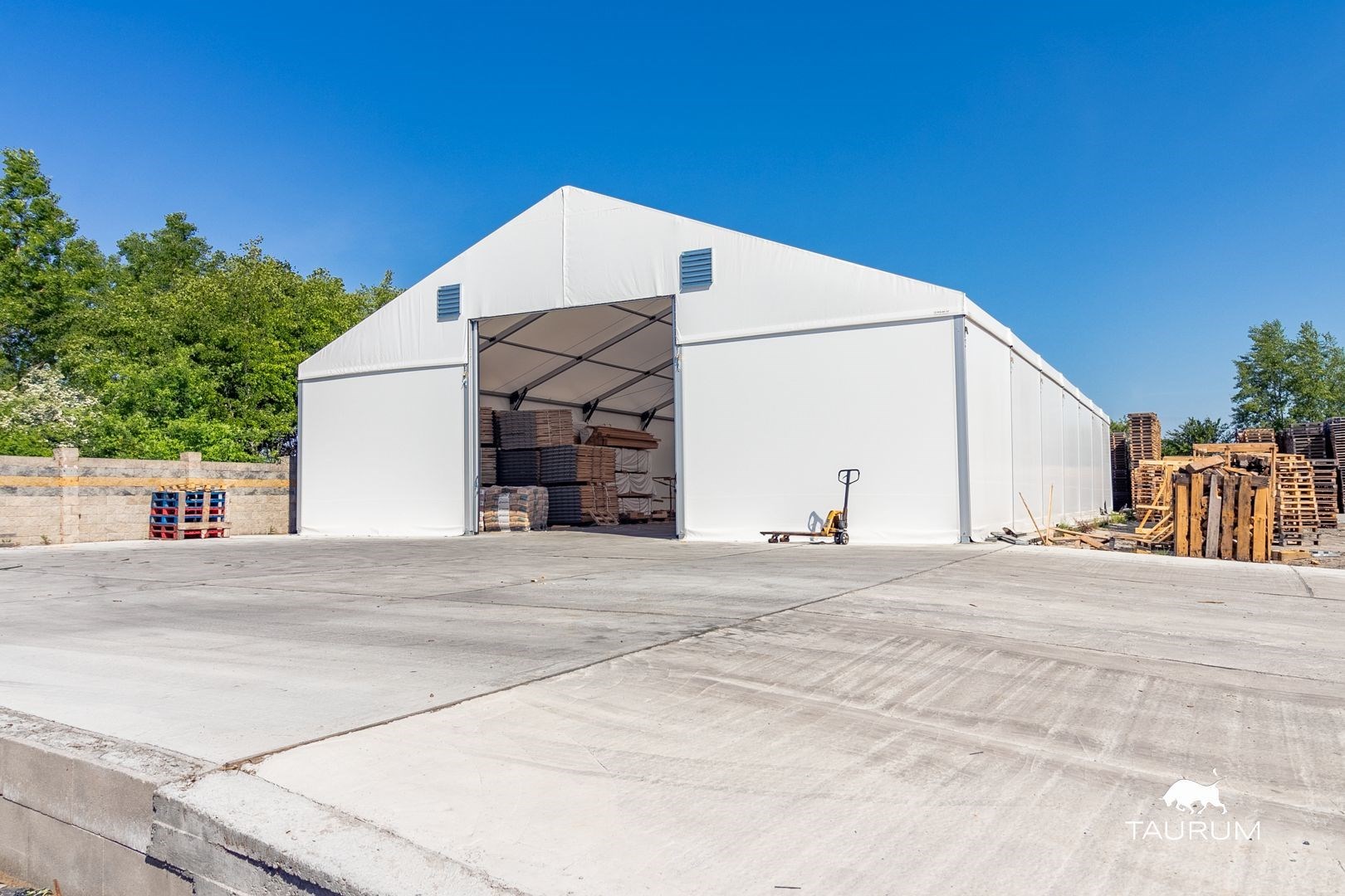4 nová stanová plachtová hala s hliníkovou konstrukcí o výměře 449,5 m2