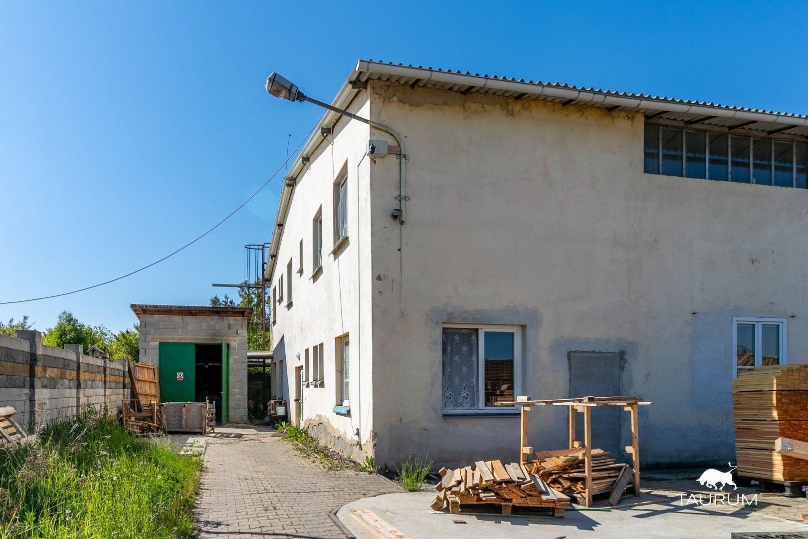 1 dvoupodlažní částečně podsklepená zděná administrativní budova s kancelářemi a zázemím (šatny, sprcha, wc, kuchyňka) o celkové podlahové ploše 285 m2, budova je ve vynikajícím stavu