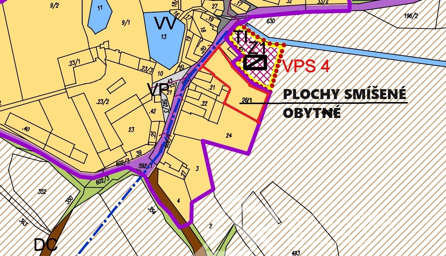 Popis pozemku: v platném územním plánu leží pozemek v „plochách smíšených obytných“, prvotně určených pro bydlení v rodinných domech. Ty zde mohou být dokonce dva! Pro ty je přivedeno i připojení dvou měření od distributora elektřiny E.ON. Z rovinatého pozemku s jižní orientací se otvírá krásný výhled - územní plán už další výstavbu v okolí nepovoluje, tím je zaručen klid, výhled a soukromí. Komunikační napojení je přímé na místní asfaltovou komunikaci. Pozemek je kompletně oplocený a podél komunikace je i kamenná podezdívka s rámovým pletivem do ocelových sloupků. Vodu je možné napojit z obecního vodovodního řadu vedoucí v přilehlé komunikaci. Obec nemá čistírnu odpadních vod, tak je třeba řešit individuálně vlastní ČOV. Elektřina přivedena na pozemek.