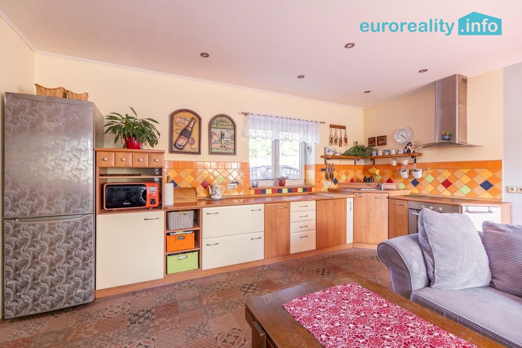 Celková zastavěná plocha domu činí 193 m². K dispozici je rovněž garáž pro jedno auto, dílna a dostatek úložného prostoru.