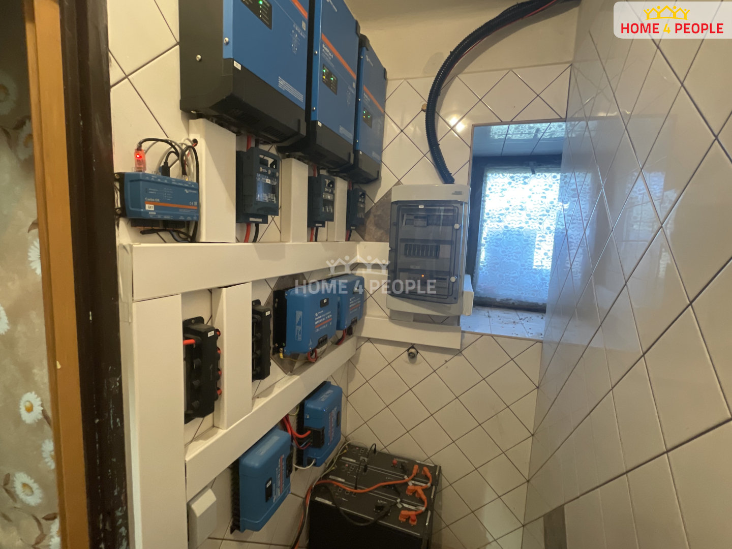 Stavba prošla rekonstrukcí (na střeše umístěno 42 solárních panelů FVE), horní patro bylo dostavěno v r. 2002 (plastová okna, elektřina v mědi). Napojeno na veškeré inž.sítě – elektřina se 2 měřiči, plyn, vodovodní řád, kanalizace má napojení dokonce na 2 stranách. Další zdroj vody je na zahradě 9 m hluboká studna, která tvoří zajímavou okrasnou dominantu zahrady. Vytápění zajištuje plynový rekuperační kotel (pořízen před 5 lety) + krb s výměníky (vytápění do kuchyně, baru, toalety v přízemí a vestibul). Ohřev vody poskytují 2 bojlery (500 l + 200 l vody) + plynový bojler na případný dohřev.
