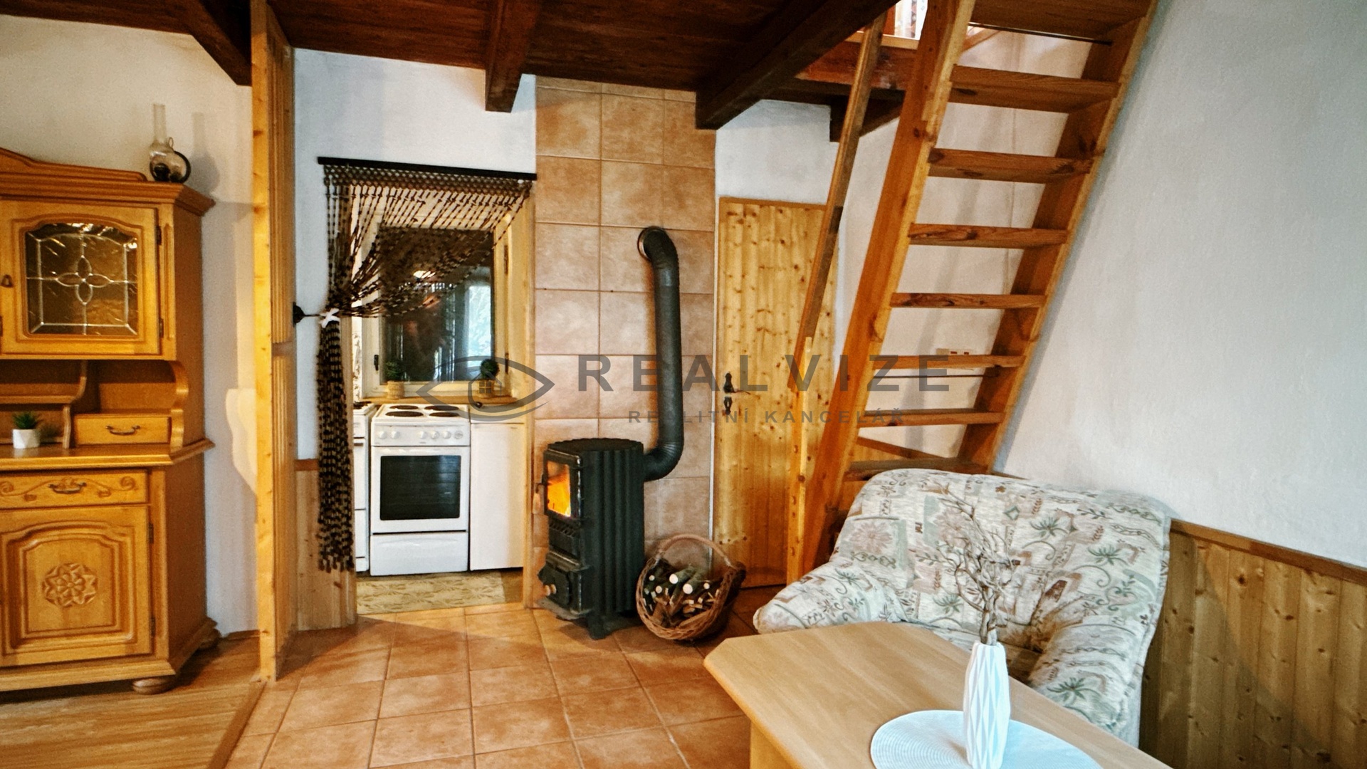 Dispozice 3+kk: dva pokoje, obývací část s kuchyní, veranda, koupelna se sprchovým koutem a WC. O pravou chatovou atmosféru se postarají krásná kamínka. K dispozici je také sklep, dílna a dřevník.