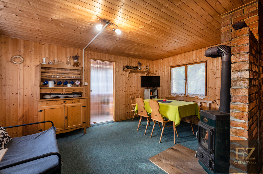 Prodej je včetně nábytku, tudíž je připravena ihned k užívání. Součástí prodeje je také zásoba nařezaného palivového dřeva.
