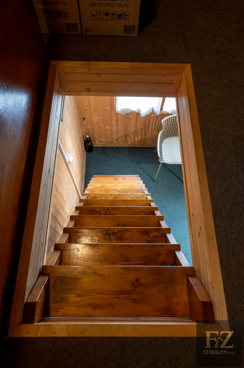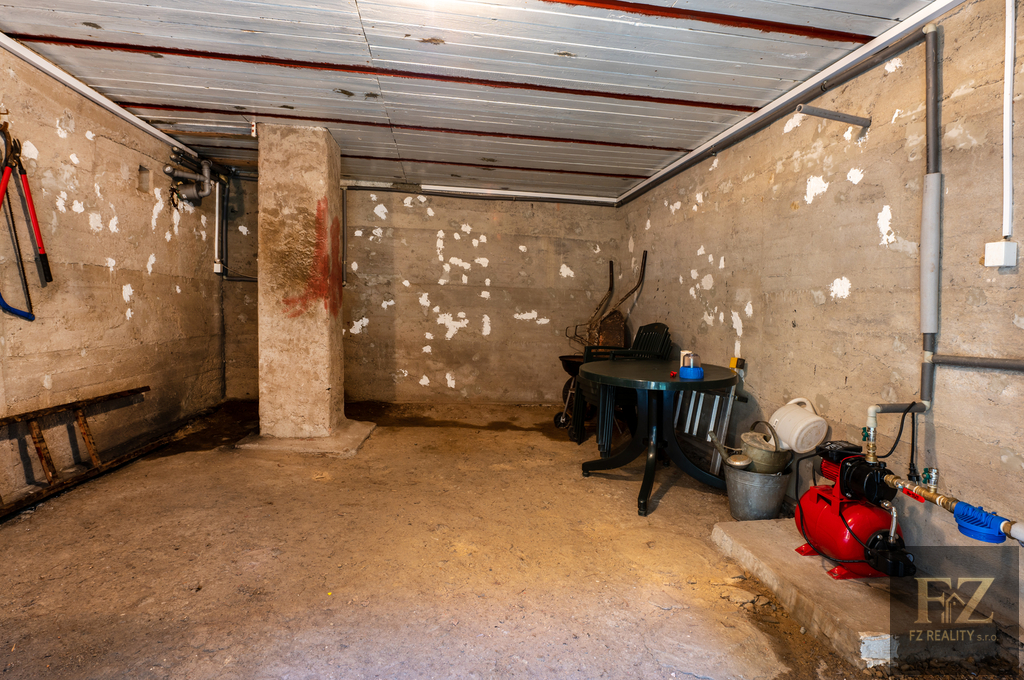 Pod chatou se nachází sklep, vhodný k uskladnění věcí a nářadí. Součástí prodeje je také vybavení, včetně elektrické pily, křovinořezu Bosch, zahradního kolečka, nábytku na terasu a dalšího zahradnického náčiní.