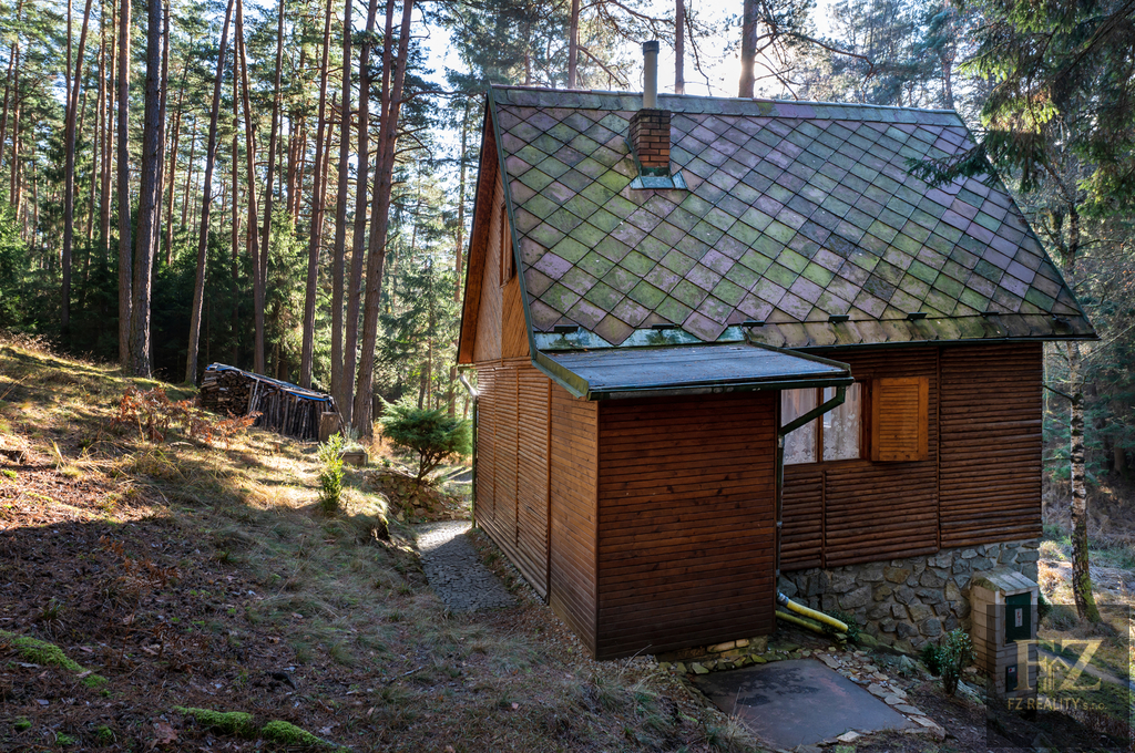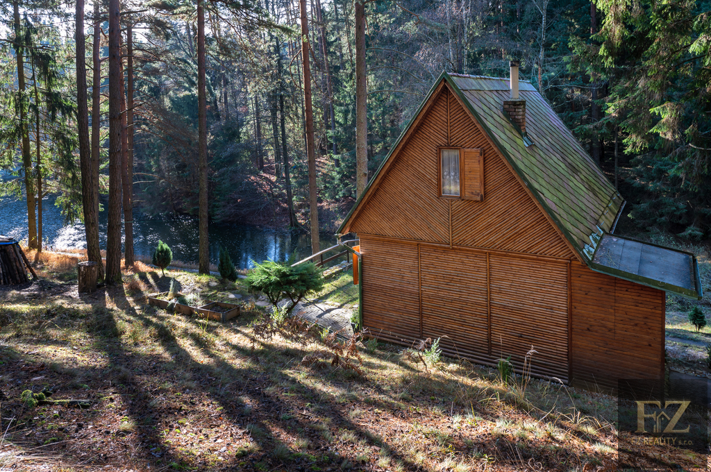 Nabízíme k prodeji jedinečnou, útulnou chatu s terasou, která se nachází v oblíbené chatařské oblasti u obce Vrábče, jen pár minut od Českých Budějovic. Jedná se o podsklepenou dřevěnou chatu o užitné ploše 44 m² se zděným základem, umístěnou u rybníka uprostřed lesa.