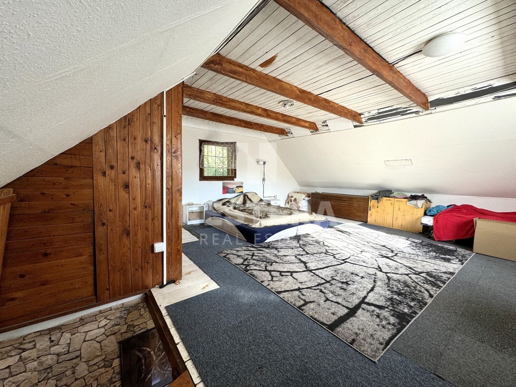 Hlavním benefitem této nemovitosti je její umístění. Najdete ji na svažitém pozemku se vzrostlou zelení, v naprostém klidu.