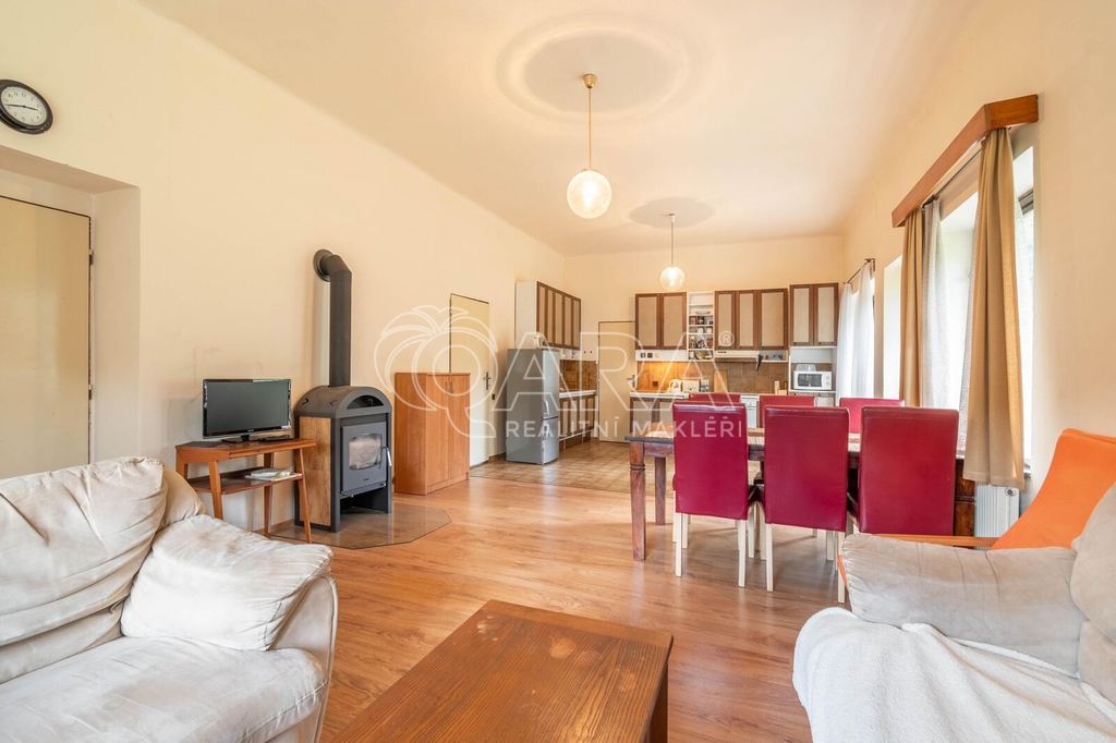Zmiňovaná nemovitost je zděným domem o 2 nadzemních podlažích, užitné ploše orientačně 204 m2, nacházející se na pozemku o výměře 1676 m2. K domu náleží garáž, do které pohodlně zaparkujete svého motorového miláčka a kůlna, do níž si jistě uložíte spoustu dalších věcí. Ve spodním patře domu se kromě předsíně nachází také ložnice, obývací pokoj, kuchyně, koupelna a oddělená toaleta. Ve druhém nadzemním podlaží naleznete další tři ložnice, z nichž lze udělat například pracovnu či dětský pokoj. Nemovitost je tedy dispozičně cca 5+kk. V dobách minulých dům fungoval jako dvougenerační. Nemovitost je ideální pro rodiny. Přestože se dům nachází u řeky, nenachází se v povodňové zóně, což Vás, jakožto budoucí majitele, jistě potěší. Díky vodnímu dílu Vrané nad Vltavou zde nebyla velká voda ani v roce 2002.