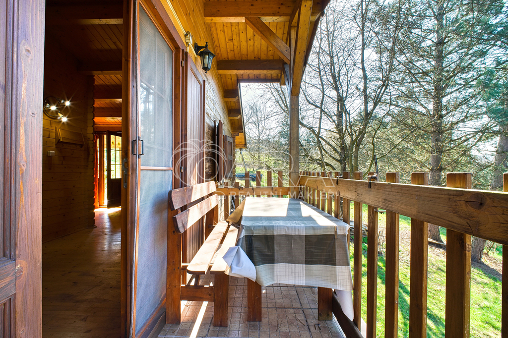 Chata má číslo evidenční a skládá se z hlavní místnosti s kuchyní, jedné ložnice a koupelny s WC. Nechybí ani balkón a terasa na ranní kávu.