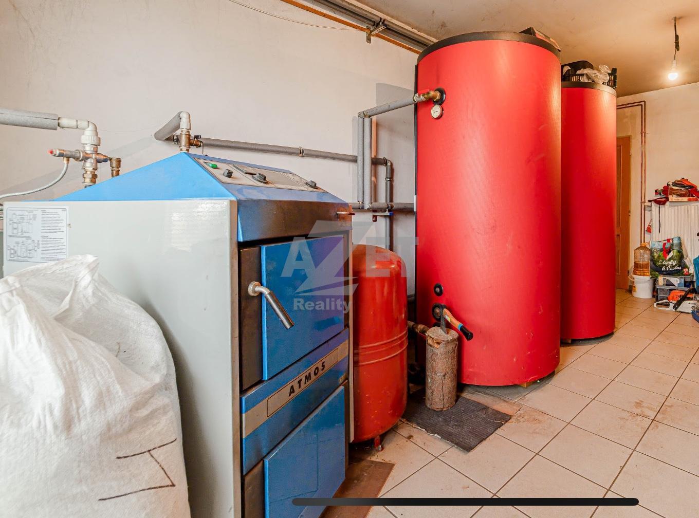 - radiátory - kotel na tuhá paliva značky Atmos se dvěma akumulačními nádržemi o celkovém objemu 1500 l