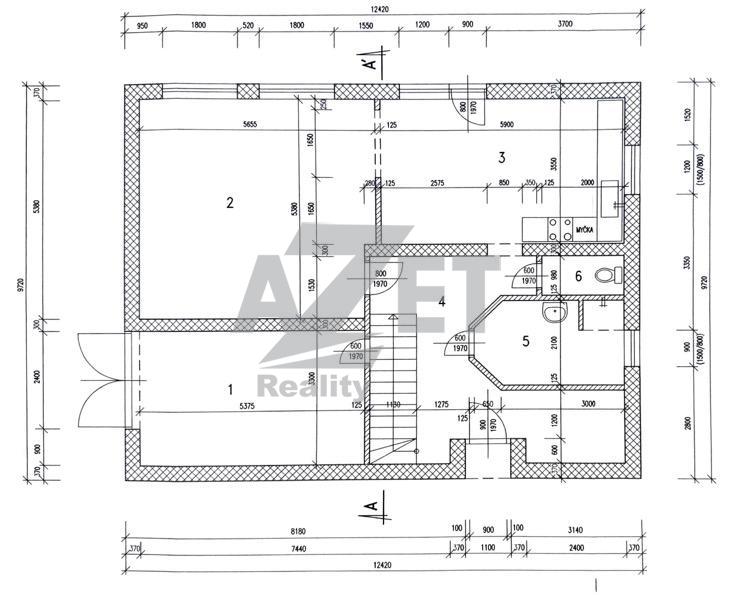 1.NP - 97,95 m2 -předsíň navazující na halu ze které je přístup do každé místnosti, kotelna, obývací pokoj se vstupem do kuchyně s jídelnou, samostatné wc, koupelna a schody do druhého patra
