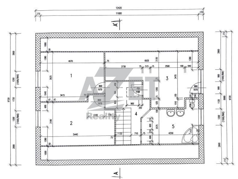 5 - koupelna + wc (nyní třetí dětský pokoj) - 10,35 m2