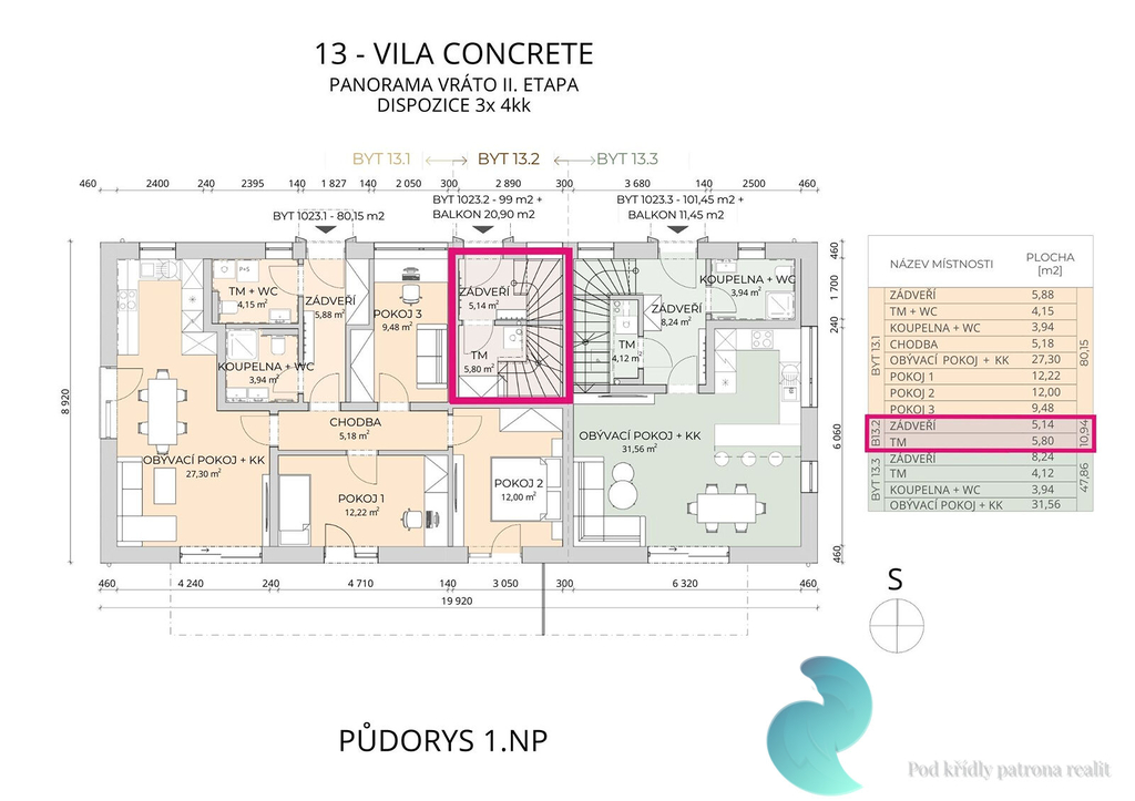 • Samozřejmě byt 4+kk (99 m²) – chytrá dispozice dělá prostor ještě vzdušnější.