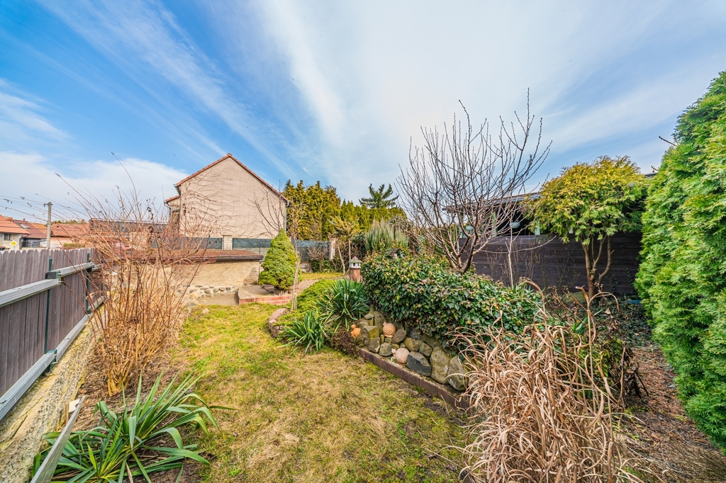 Velkým benefitem je oplocená zahrada o výměře 93 m², která poskytuje příjemné soukromí a vytváří hezké zázemí pro každodenní odpočinek. Najdete zde sklep, okrasnou zahradu, pergolu, místo na grilování i prostor pro relaxaci. Celkově tak nemovitost působí jako ideální místo pro pohodové bydlení, víkendové pobyty i příjemné trávení volného času.
