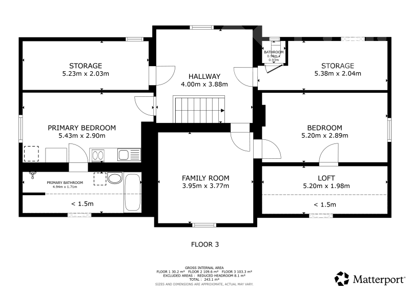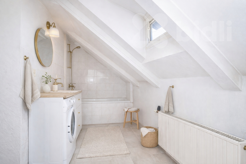V patře je kuchyně, samostatné WC, koupelna s vanou i sprchovým koutem, prostor pod šikminou, kde je střešní okno u kterého lze vybudovat prostor na pračku, sušičku a třeba šatnu. Tento prostor je i na opačné straně. Dále jsou zde čtyři další pokoje.