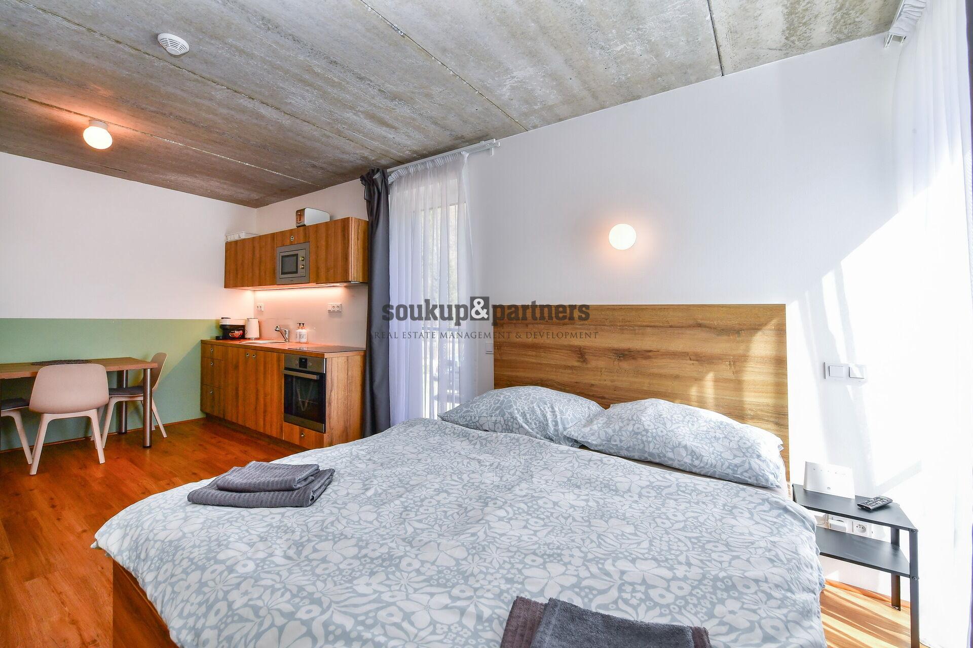 Součástí prodeje je i platforma se zákaznickou základnou pro krátkodobé ubytování, k čemuž v současnosti apartmán slouží.