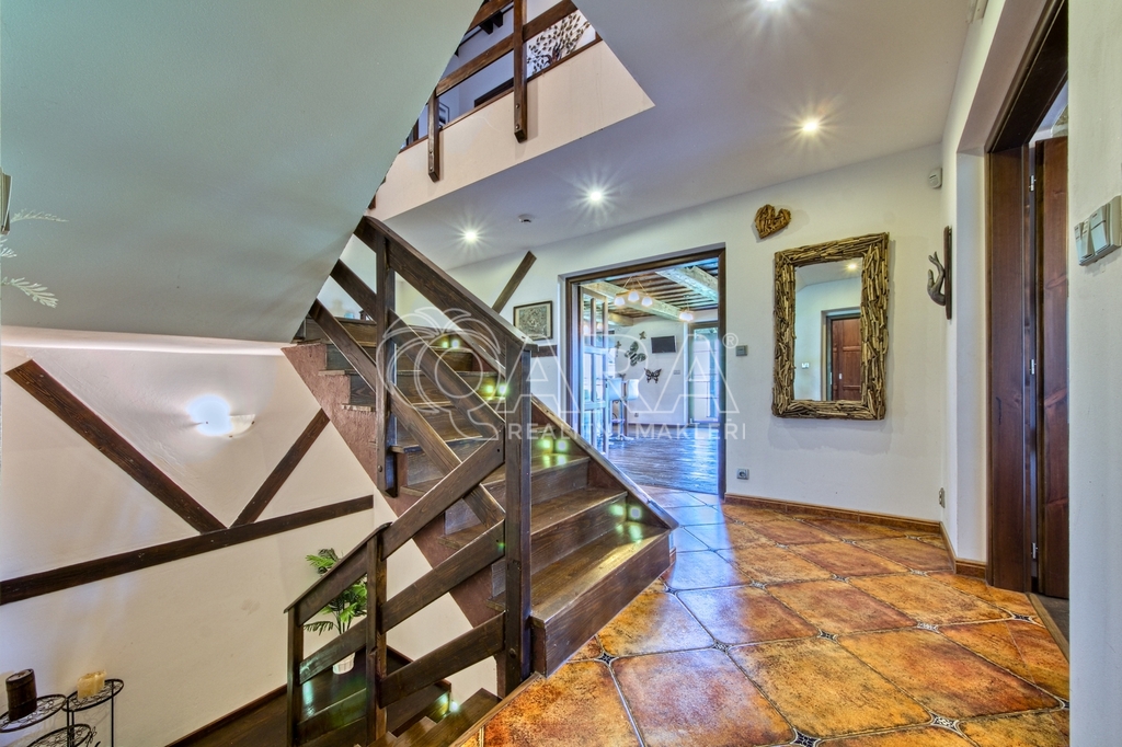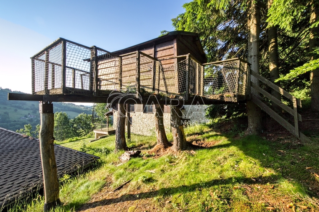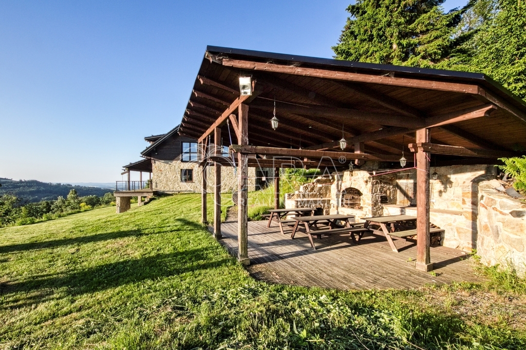 Nabízíme ke koupi exkluzivní horskou rezidenci ve vyhledávané lokalitě Vrchlabí, přímo mezi skiareály Bubákov a Herlíkovice. Dům o dispozici 7+kk je doplněn o samostatný apartmán 2+1 a nabízí celkovou užitnou plochu 568 m². Nachází se na prostorném pozemku o rozloze 4 087 m² a je nabízen kompletně vybavený, připravený k okamžitému užívání. Co na této nemovitosti oceníte nejvíce je naprosté soukromí, klid a nádherné výhledy.