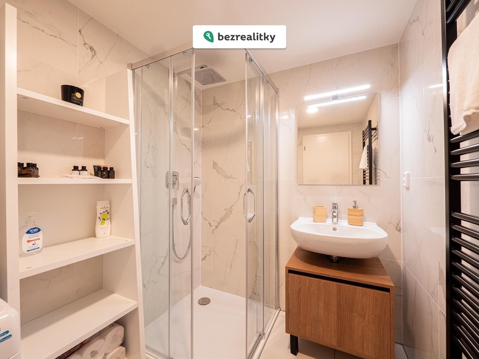 • Moderní koupelna se sprchovým koutem a toaletou