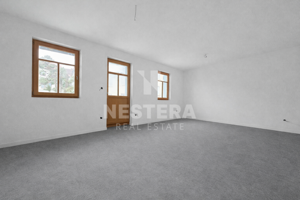 Dům je dokončen ve stavu Shell & Core, tedy bez finálních povrchových úprav interiéru (podlahy, obklady, sanita, interiérové dveře apod.). Budoucí majitel tak získává jedinečnou možnost dokončit interiér přesně podle svých představ. Prodávající je navíc připraven s případným dokončením aktivně pomoci.