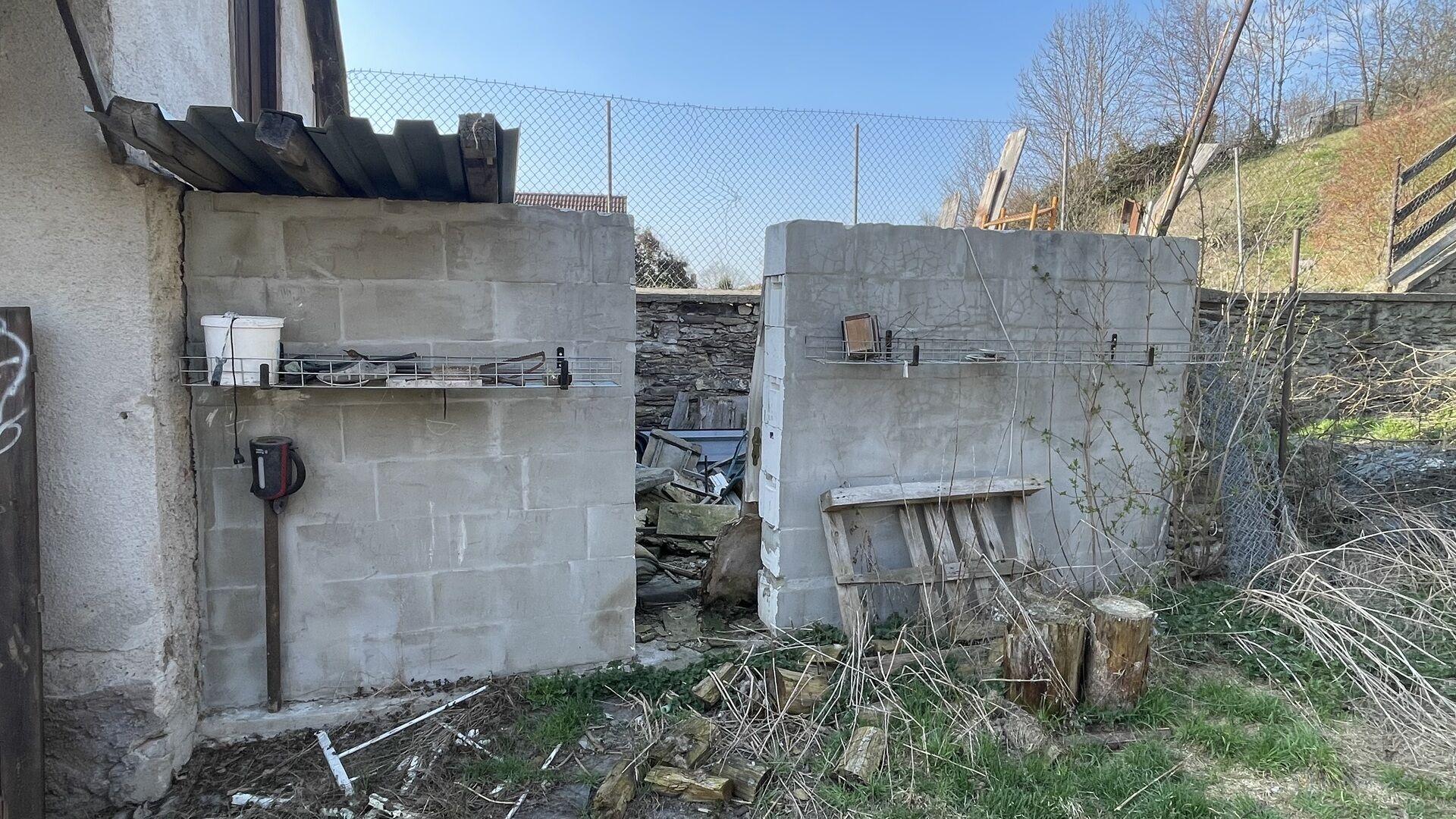 Za domem je zděná kůlna, užívaná jako pokoj mimo dům s kamny na pevná paliva. Za ní byla zahájena další stavba (dřevník), ale nebyla dokončena.