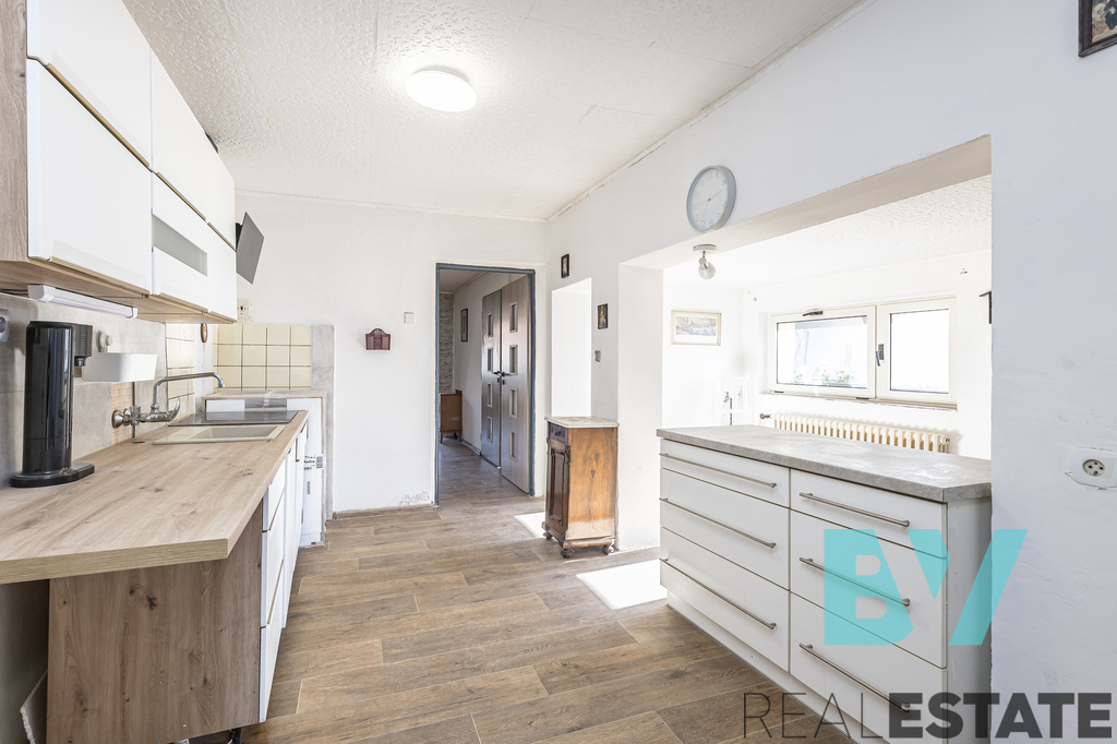 Velkou výhodou je také podsklepení domu, které poskytuje další užitné místnosti vhodné jako dílnu, sklad nebo praktické úložné prostory.