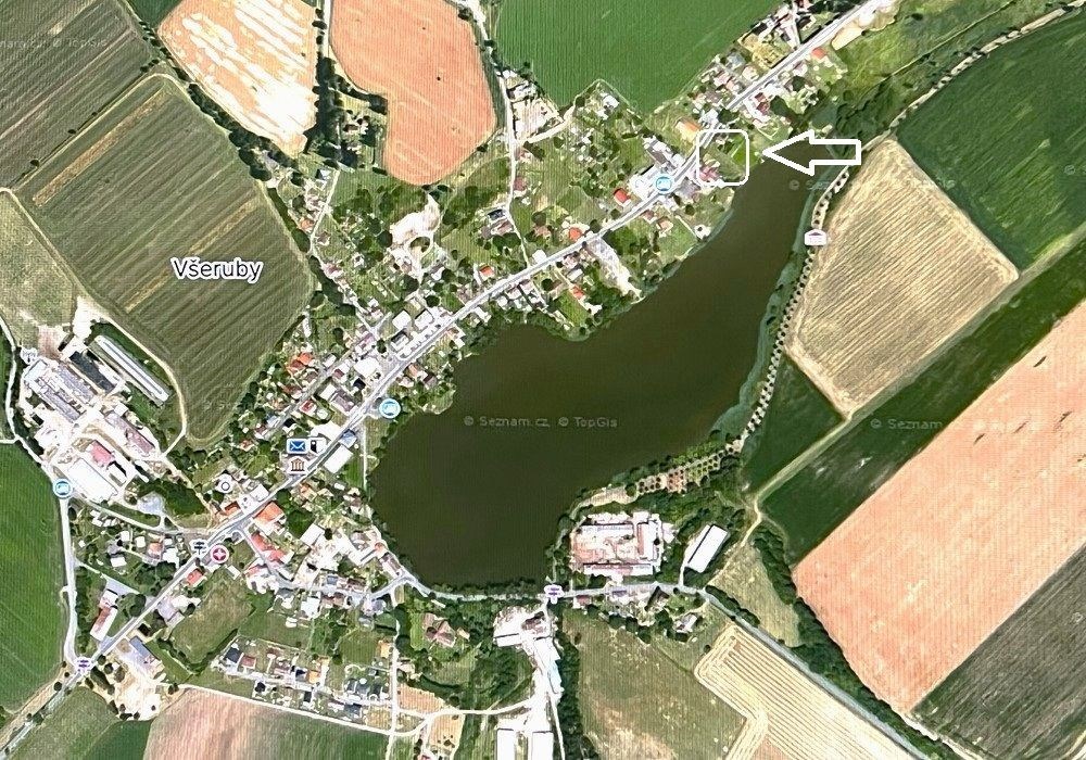 Soubor pozemků o celkové výměře 889 m2 v zastavěné části obce Všeruby, určený platným územním plánem obce jako zastavitelné území, tzv. stabilizovaná plocha pro stavbu k trvalému bydlení v zastavěném území obce s funkčním využitím plochy pro bydlení (BO). Možnost realizace budoucí výstavby samostatného rodinného domu nebo domu pro rodinnou rekreaci s vedlejšími a doplňkovými stavbami. Pozemek navazuje po celé šířce (S) na veřejnou příjezdovou komunikacisilnici II. třídy se zpevněným asfaltovým povrchem a na klidové obecní prostranství (pronajatá plocha) s navazující vodní plochou místního rybníku s možností převodu nájmu navazujícího pozemku na nového vlastníka a násl. případného odkupu pozemku. Lokace pozemku v mírně svažitém terénu s orientací pozemku a svažitosti na jihovýchod s možností zbudování příjezdu na pozemek ze severní části pozemku z navazující komunikace. Pozemek navazuje na okolní zástavbu rodinných domů a penzionu, plochu veřejného klidového prostranství a plochy zahrad. Pozemek s udržovaným travním porostem je oplocen. K pozemku je možno zbudovat budoucí přípojky na stávající veřejné rozvody splaškové kanalizace, veřejného vodovodu, rozvody elektřiny, plynu a telekomunikační rozvody u hranice pozemku. Nabízený pozemek je situován v obci se základní dopravní dostupností a vybaveností ve vesnické, přírodní lokalitě se zázemím malé pohraniční obce (silniční hraniční přechod), cca 5 km od malého města Kdyně, cca 15 km od okresního města Domažlice s kompletními službami, veřejnou infrastrukturou a kompletní občanskou vybaveností. Předností nabízeného pozemku je situování pozemku v okrajové zástavbě, v blízkosti vodní plochy, lokace obce v blízkosti hraničního přechodu CZ/SRN, dostupnost pozemku, možnost napojení na kompletní inženýrské sítě a možnost realizace výstavby rodinného domu bez zásadních regulativů. Inženýrské sítě: dostupnost pozemku z veřejné zpevněné komunikace, u hranice pozemku možnost napojení na stávající rozvody elektrické sítě (vzdušné vedení), veřejnou splaškovou kanalizaci, veřejný vodovod, přípojka na plyn zbudována v pilíři na hranici pozemku a příp. možnost napojení na telekomunikační rozvody.