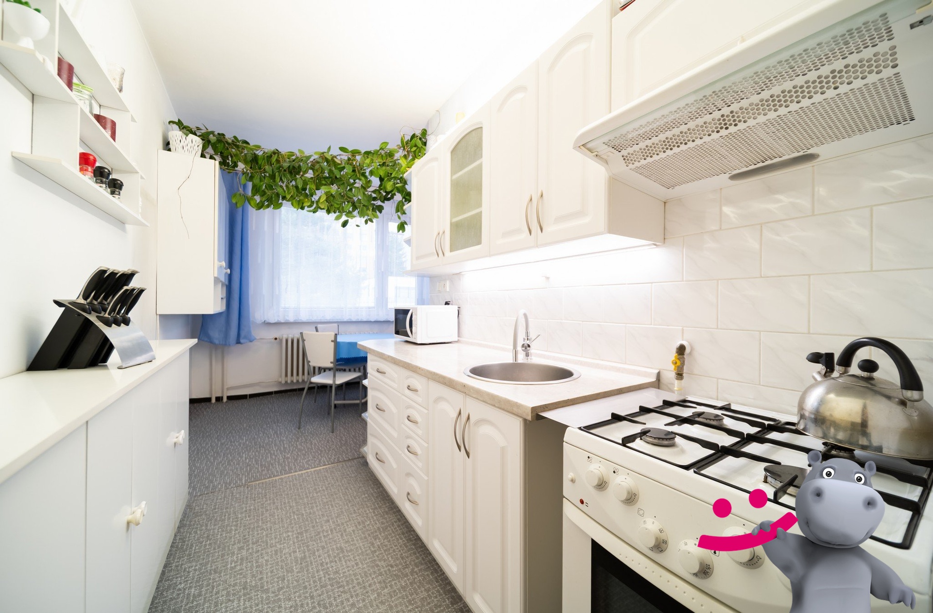 Ačkoli jste oficiálně na sídlišti, díky umístění bytu máte všechno doslova na dosah ruky – obchody, služby, MHD i školu – všude jste chůzí opravdu za minutu.