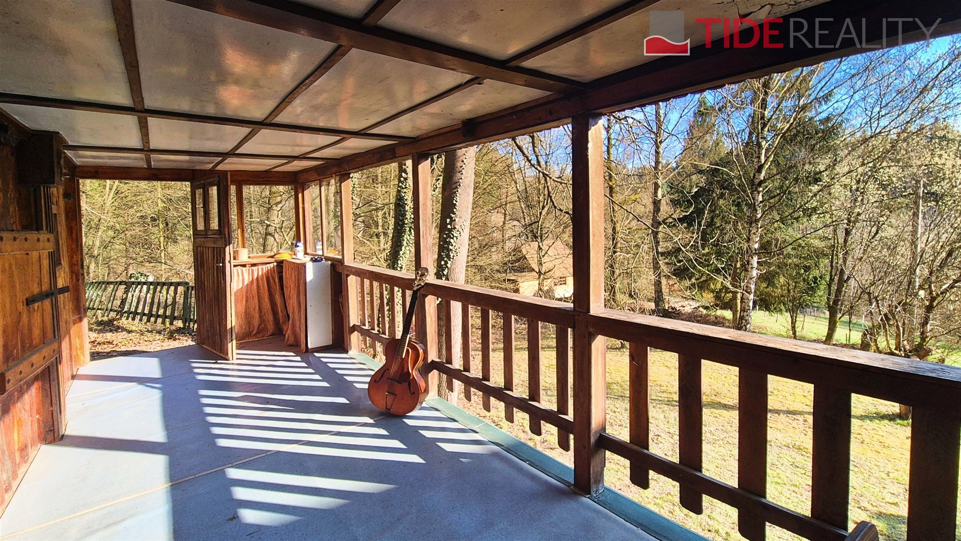 Chata samotná stojí na pískovcové skále, má kamennou podezdívku a je částečně podsklepená. V přízemí i v patře najdete útulné verandy s krásným výhledem do zeleně. V hlavní obytné části vás zahřeje krb, nechybí ani malý kuchyňský kout s jídelnou. V podkroví se nacházejí dvě ložnice.