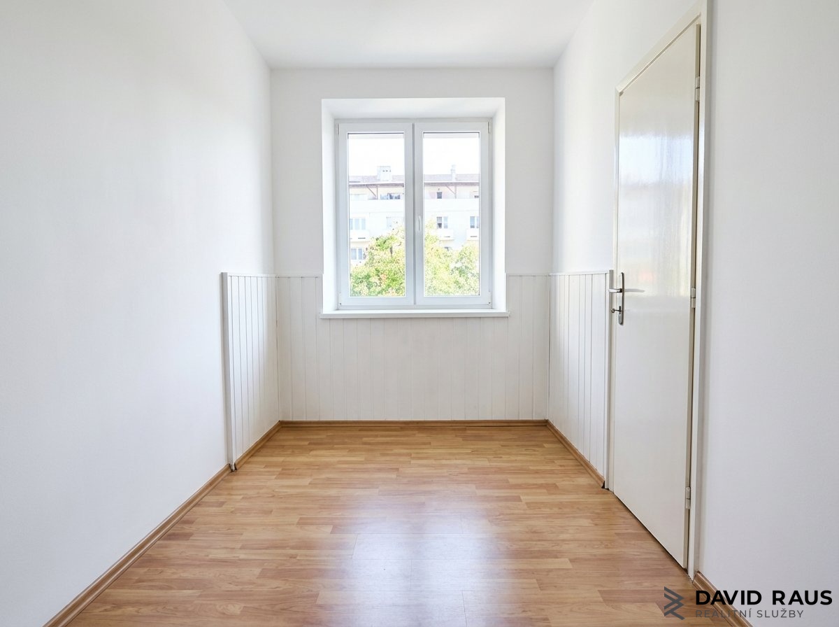 Součástí prezentace jsou i vizualizace interiéru, které ukazují, jak může byt vypadat po jednoduchých úpravách, jako je vyklizení a výmalba na bílo. Díky nim si můžete snadno představit svěží a moderní podobu prostoru bez nutnosti náročné rekonstrukce.
