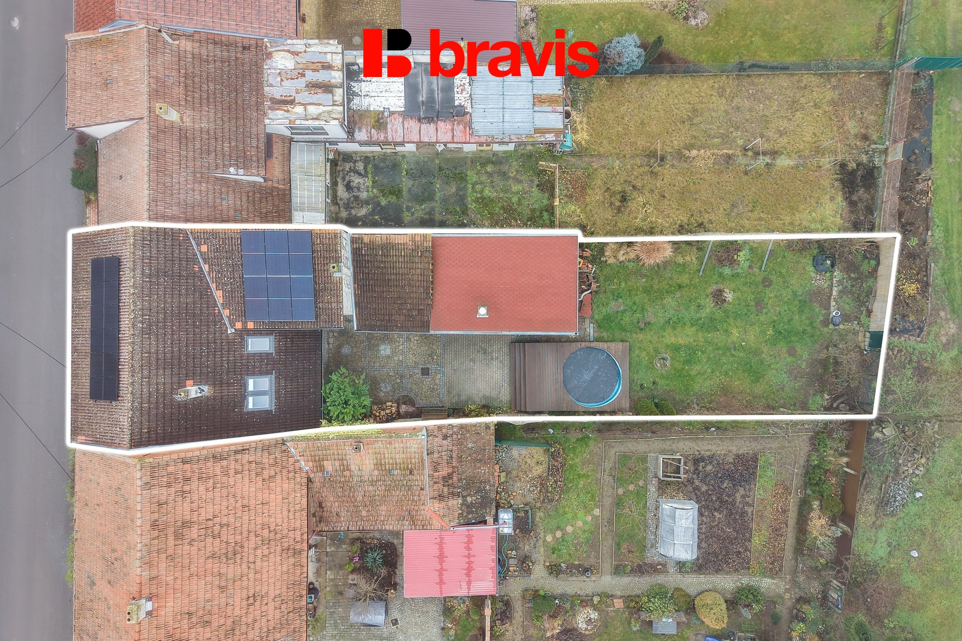 K domu náleží dvůrr, na kterém je zbudovaný vekovní bazén a zahrada. Pozemek je rovinatý a oplocený.