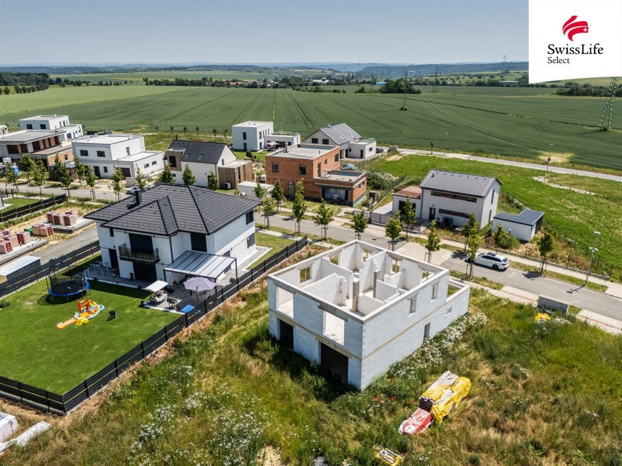 Dům stojí na rovinatém pozemku o velikosti 803 m, v klidné části obce s výbornou dostupností do Prahy.