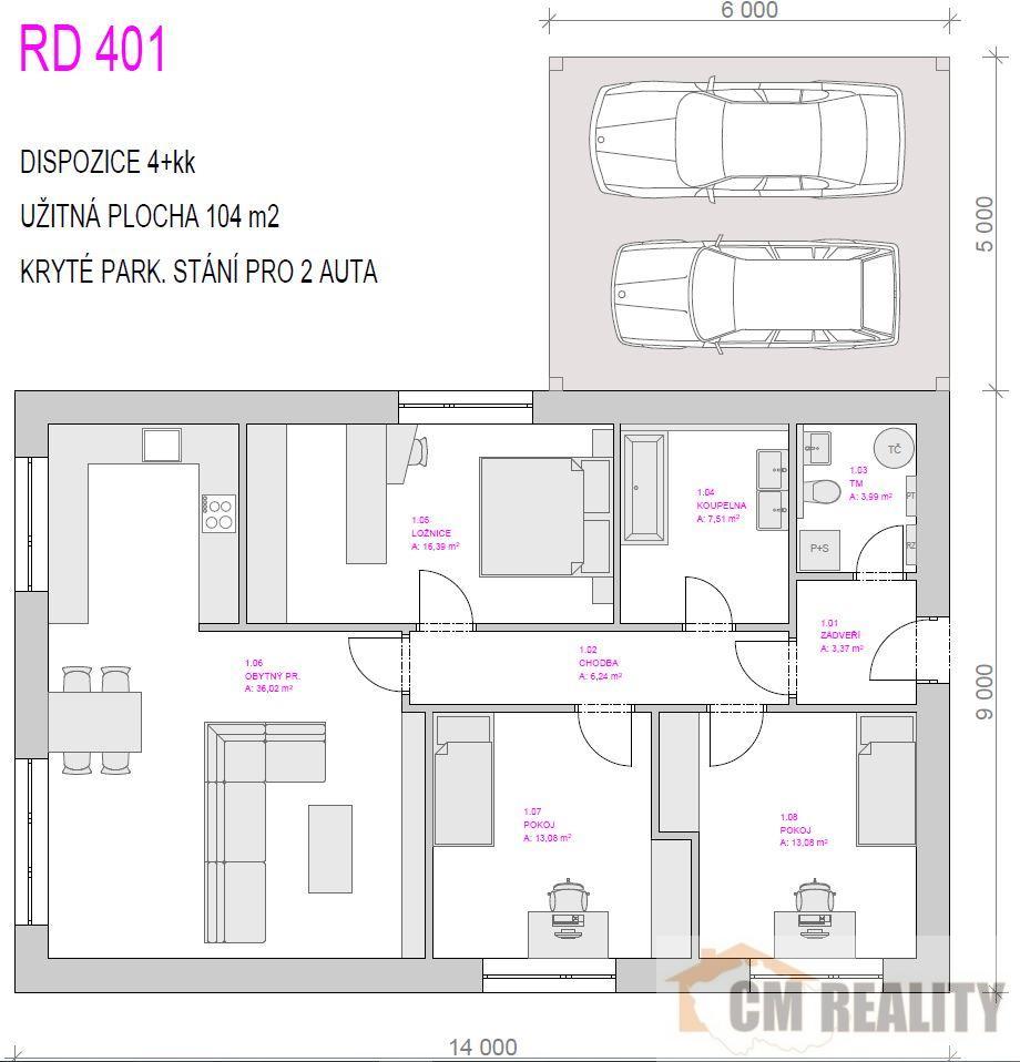 Cena domu 5.490.000,- Kč + 2 % RK ve variantě Stavba před dokončením (stavba nezahrnuje vnitřní příčky, interiérové omítky, tepelné čerpadlo, jednotku rekuperace, el. rozvaděč a koncové prvky, povrch příjezdové cesty, interiérové dveře, povrchy podlah, obklady a dlažby v koupelně a na WC, sanitární vybavení).