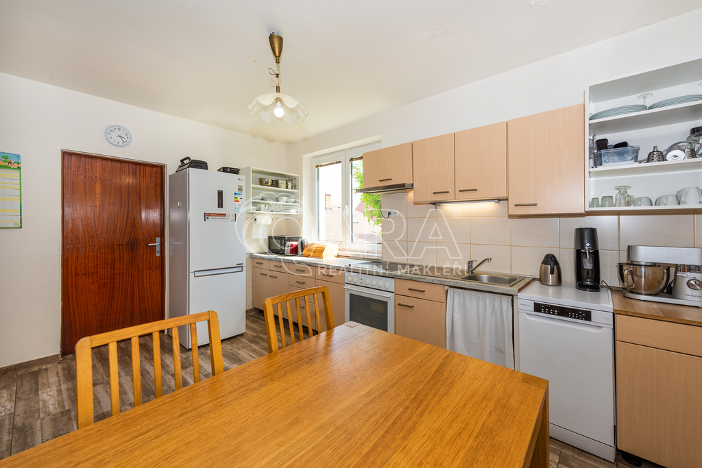 Dům je vybaven částečně, což umožňuje novým majitelům přizpůsobit si interiér podle vlastního vkusu. Vytápění zajišťuje moderní plynový kondenzační kotel, takže se můžete spolehnout na příjemné a teplé prostředí i v chladných měsících.