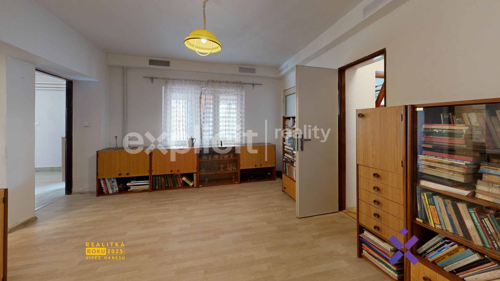 Rodinný dům o užitné ploše 162 m² je dispozičně řešen jako 5+kk. Vstup do domu vede přes prostornou halu s chodbou, odkud se vstupuje do hlavní obytné části – kuchyně s jídelním koutem, obývacího pokoje, ložnice a dvou dalších pokojů. Dále jsou k dispozici dvě koupelny, samostatné WC, komora, sklad a vstup do podkroví. Podkroví nabízí rozsáhlý půdní prostor vhodný k vybudování další obytné části nebo jako praktické úložné zázemí.